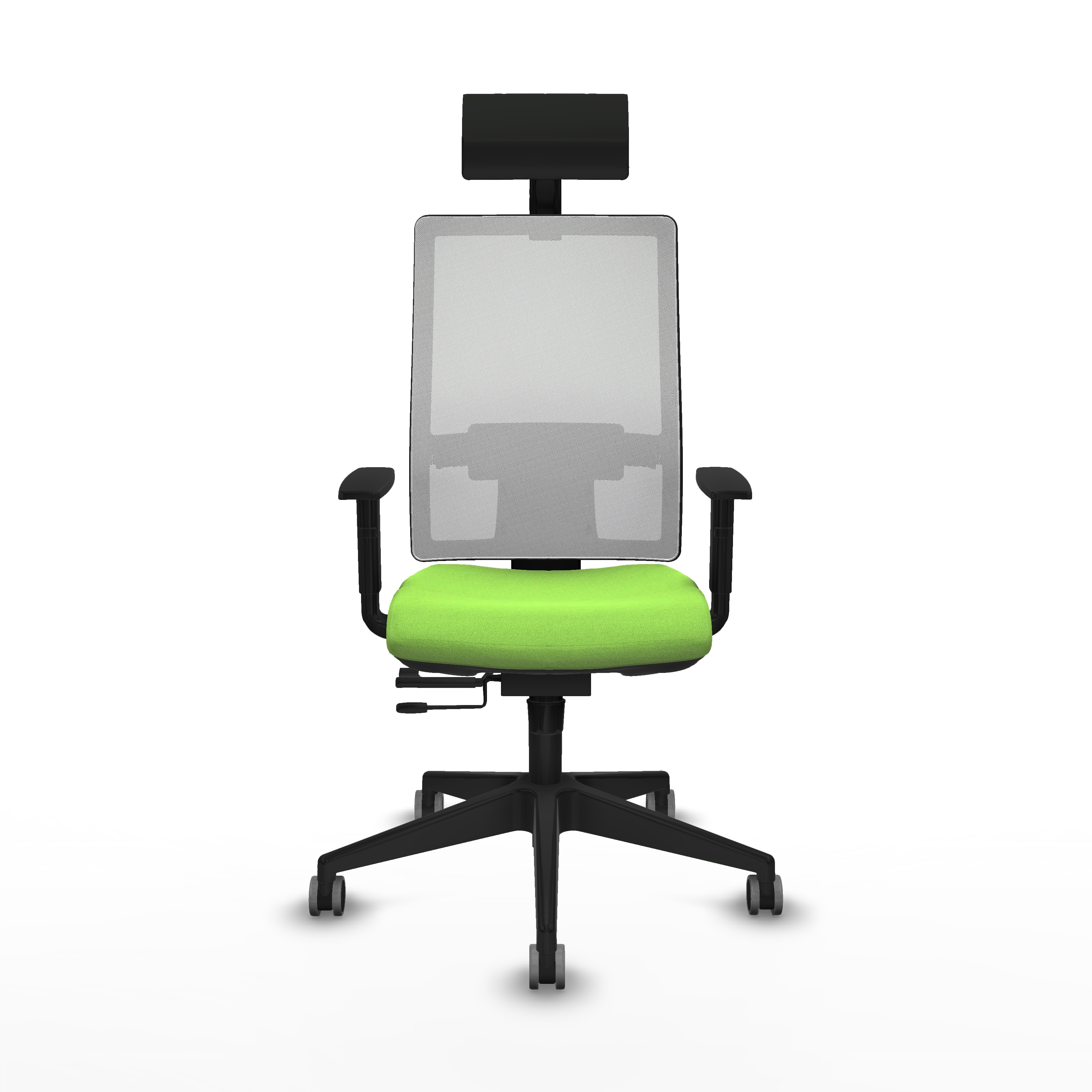 El mecanismo permite la regulación de la inclinación del respaldo y asiento con fijación en 3 puntos, además de un desplazamiento horizontal del asiento de 5 cm, facilitando ajustes personalizados para una silla ergonómica para problemas de espalda. Los brazos 1D y el soporte lumbar 1D complementan el confort, mientras que el cabecero fijo añade soporte adicional para la zona cervical.