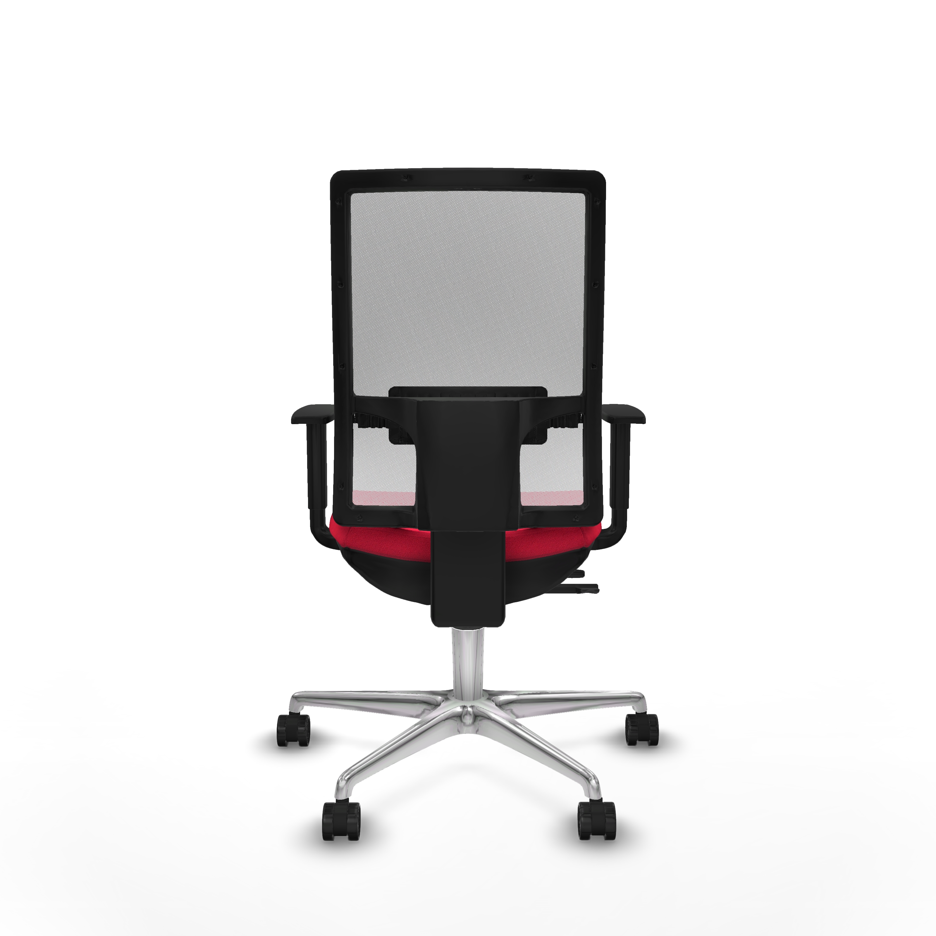Equipada con ruedas de nailon de 6.5 cm de diámetro, con eje interno y perno de acero de 11 mm, esta silla de oficina roja se desplaza con suavidad y estabilidad. Su base de aluminio pulido de 5 radios y 72 cm de diámetro asegura resistencia y un acabado elegante.
