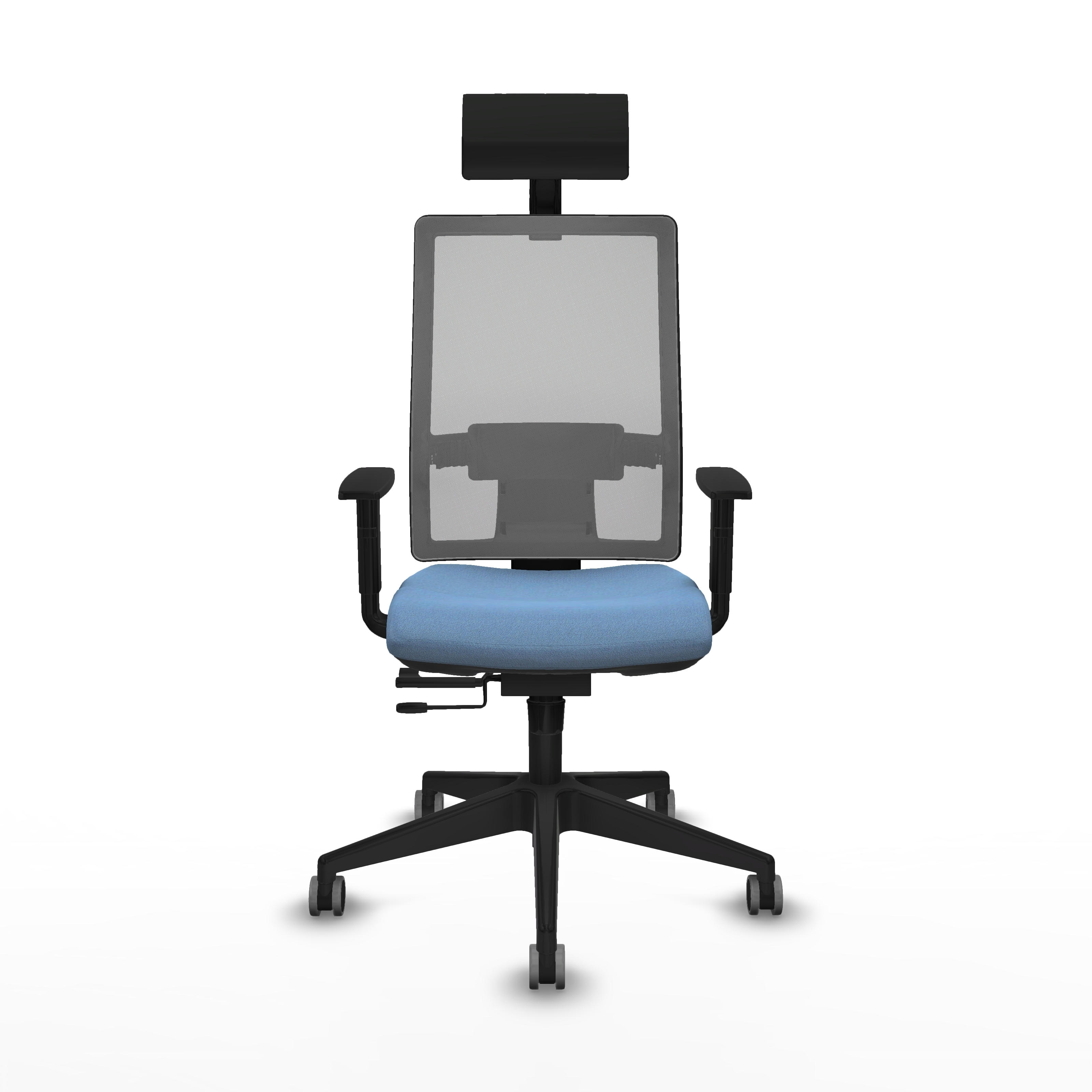 Horna traslack malla gris bali azul cielo brazos 1D base piramidal cabecero fijo ruedas 65mm engomadas