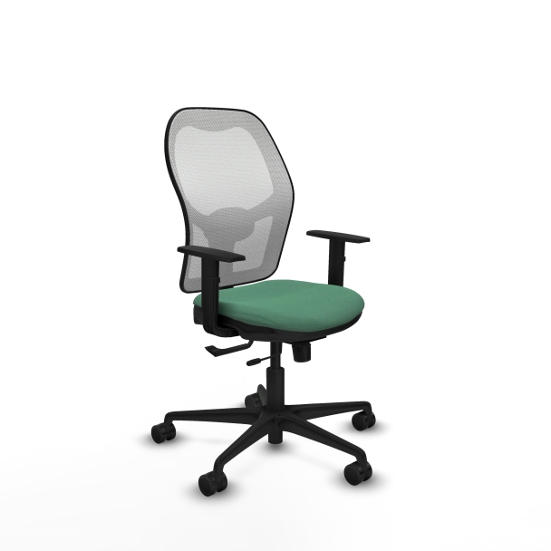 La silla giratoria verde de PIQUERAS Y CRESPO destaca por su diseño funcional y ergonómico, ideal para quienes buscan comodidad y estilo en su espacio de trabajo. Cuenta con un respaldo de 54 cm que ofrece un soporte adecuado para largas jornadas, complementado con un soporte lumbar L1D que mejora la postura y reduce la fatiga.