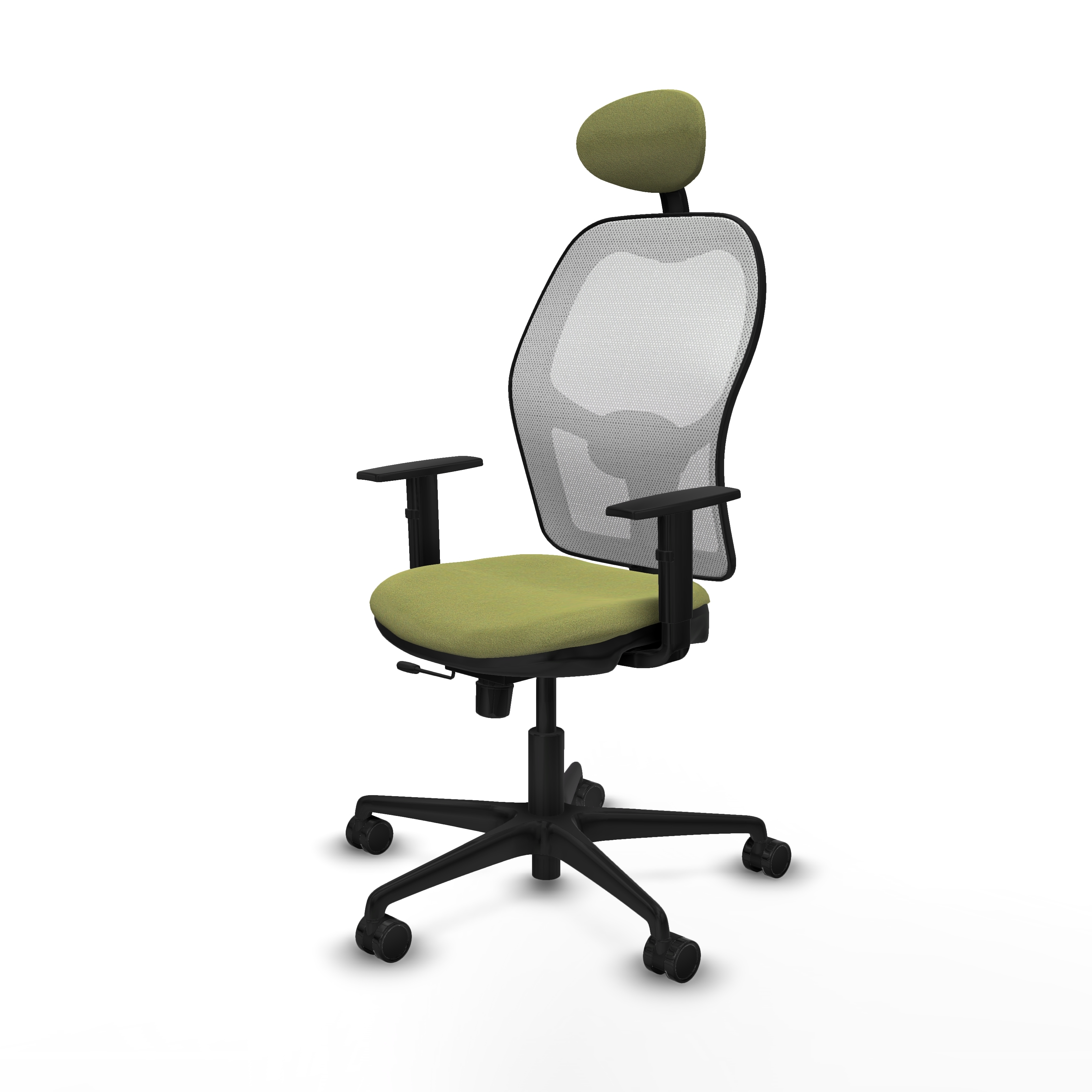 Jorquera traslack malla blanca bali verde oliva brazos 1D base nailon cabecero fijo ruedas 65mm nailon