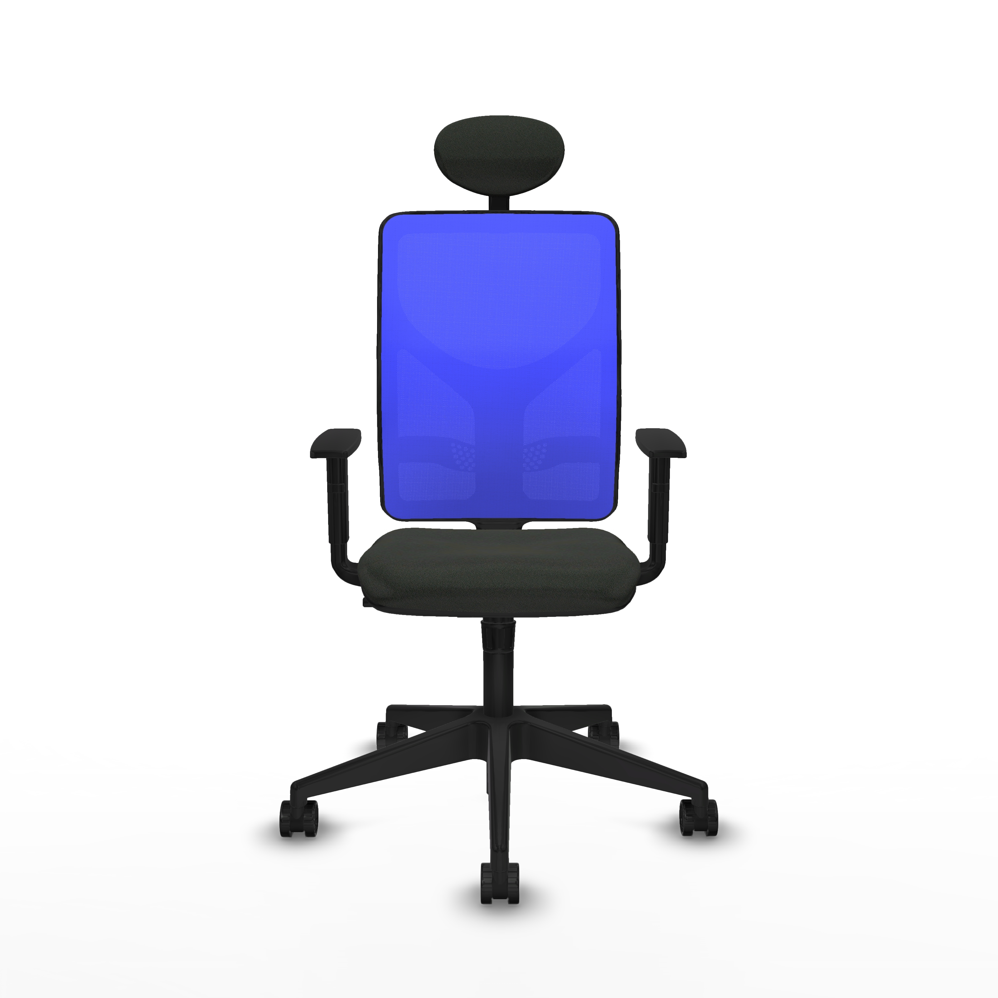 Motilla sincro malla azul bali negro brazos 1D base piramidal cabecero fijo ruedas 65mm nailon