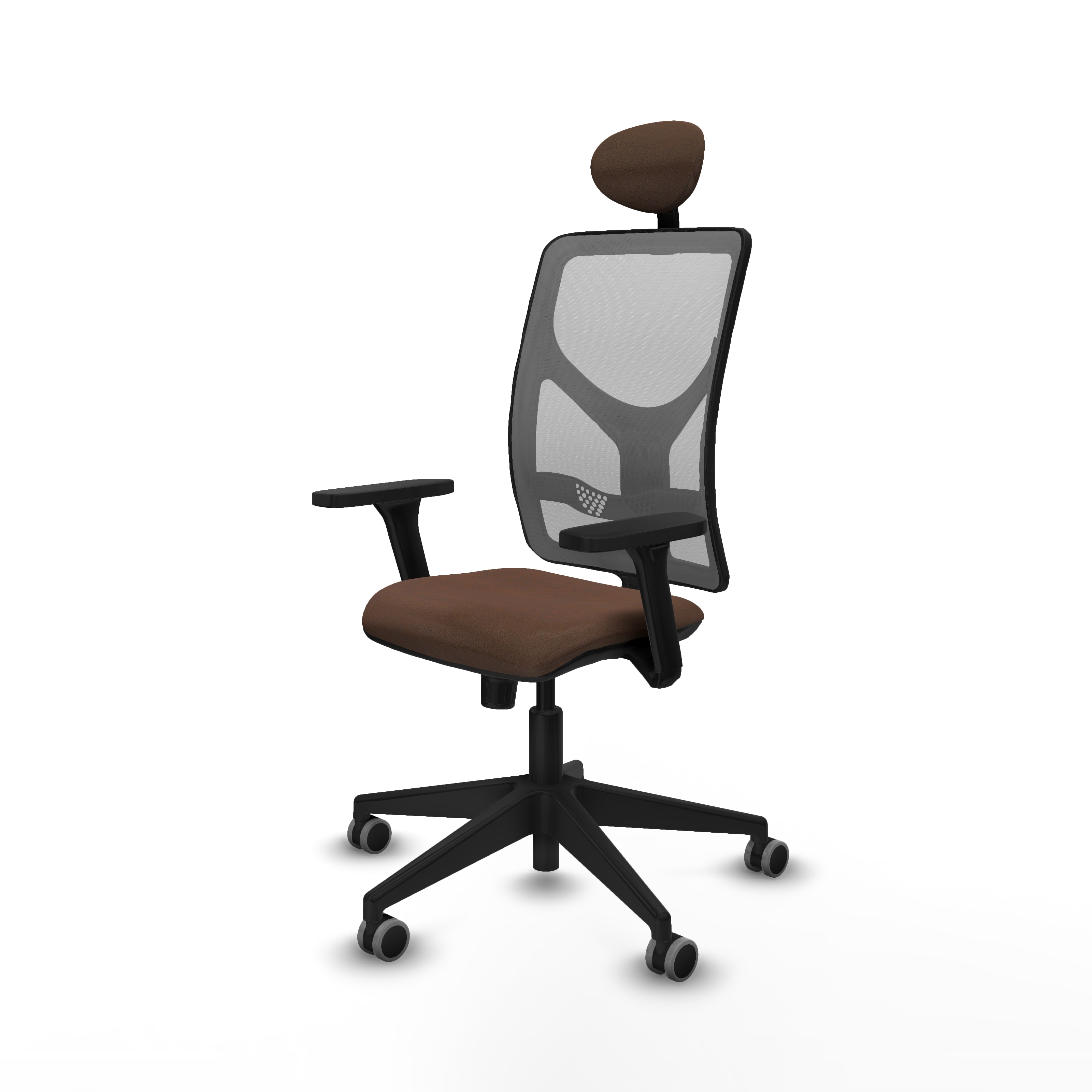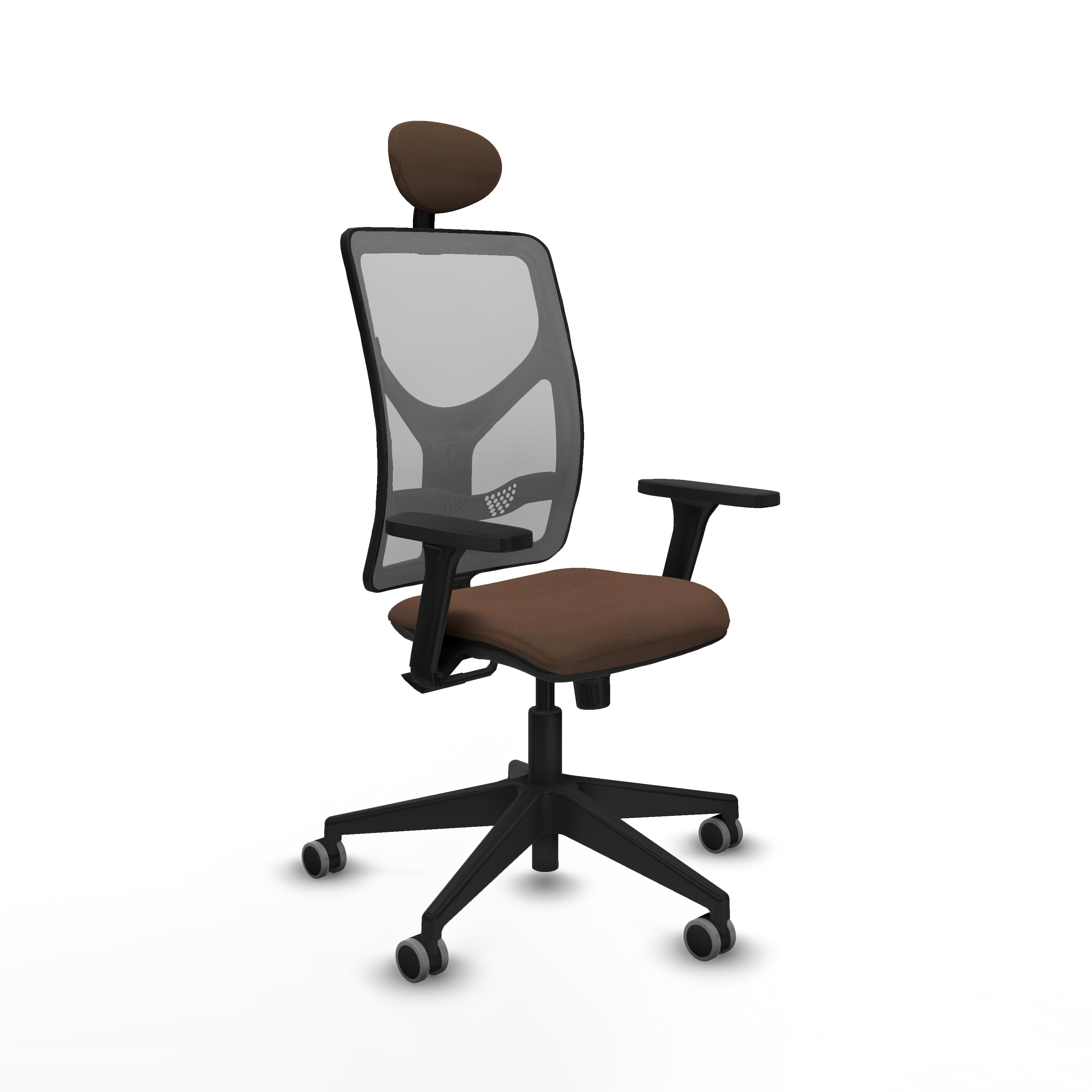 Motilla sincro malla gris bali marrón oscuro brazos 3D base piramidal cabecero fijo ruedas 65mm engomadas