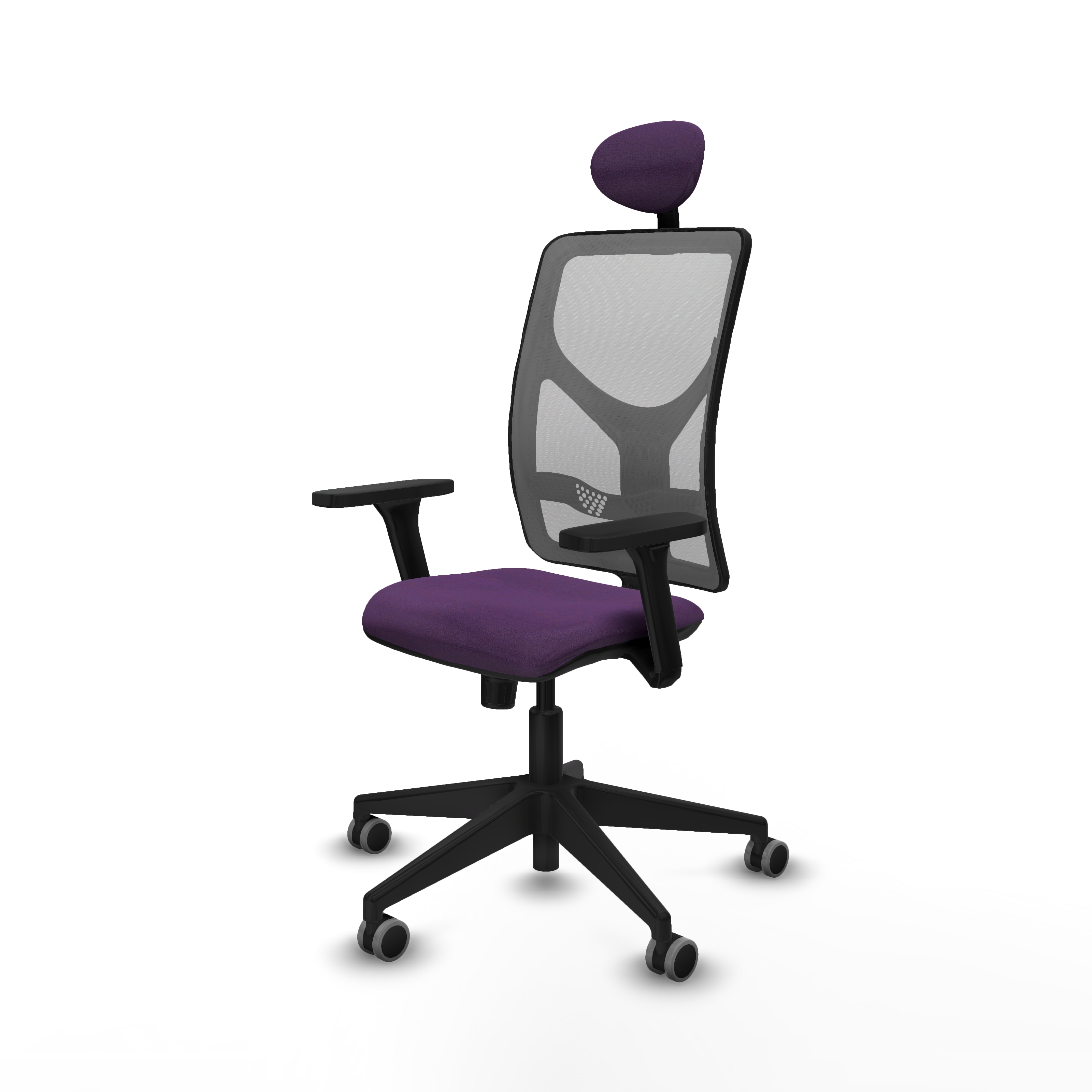 Motilla sincro malla gris bali morado brazos 3D base piramidal cabecero fijo ruedas 65mm engomadas