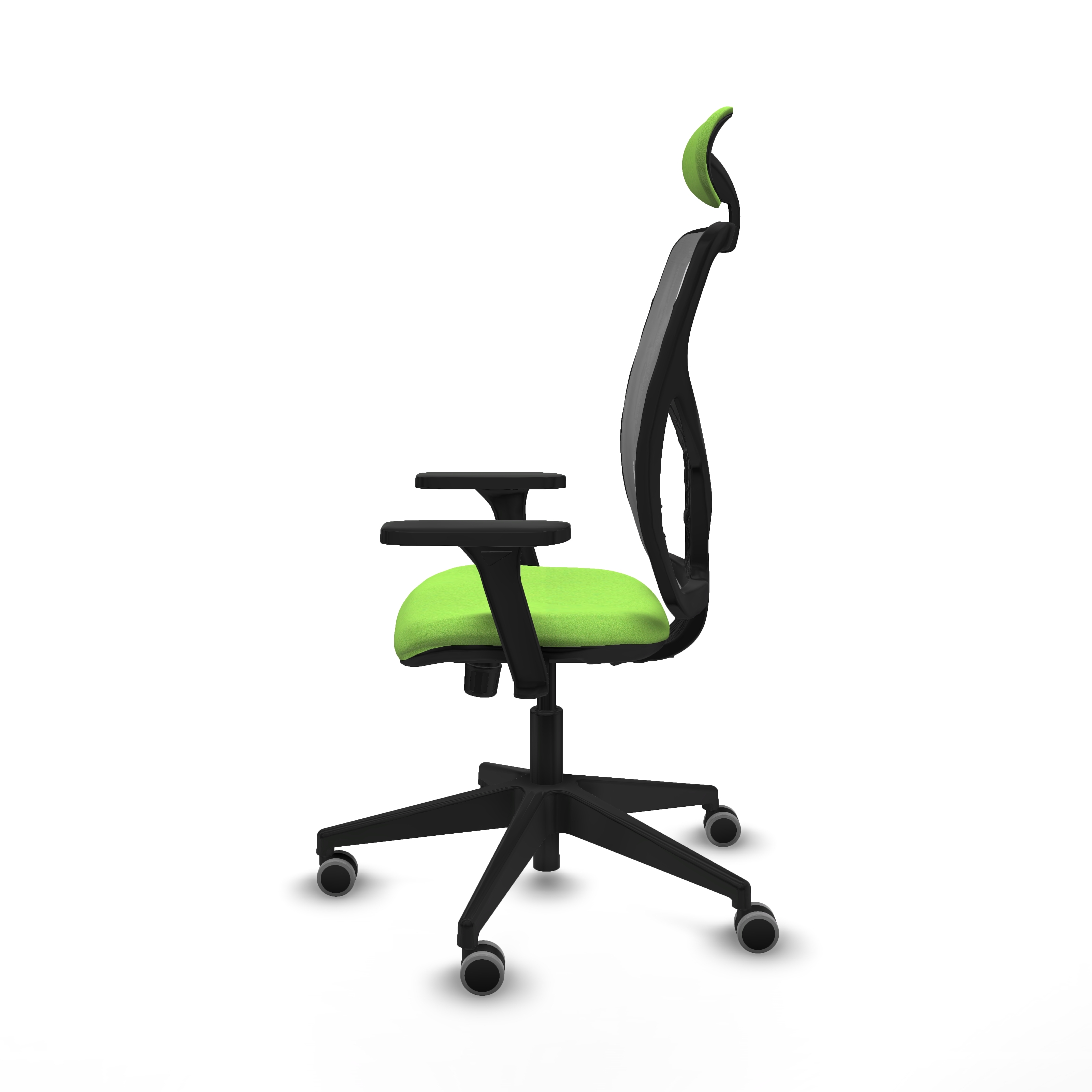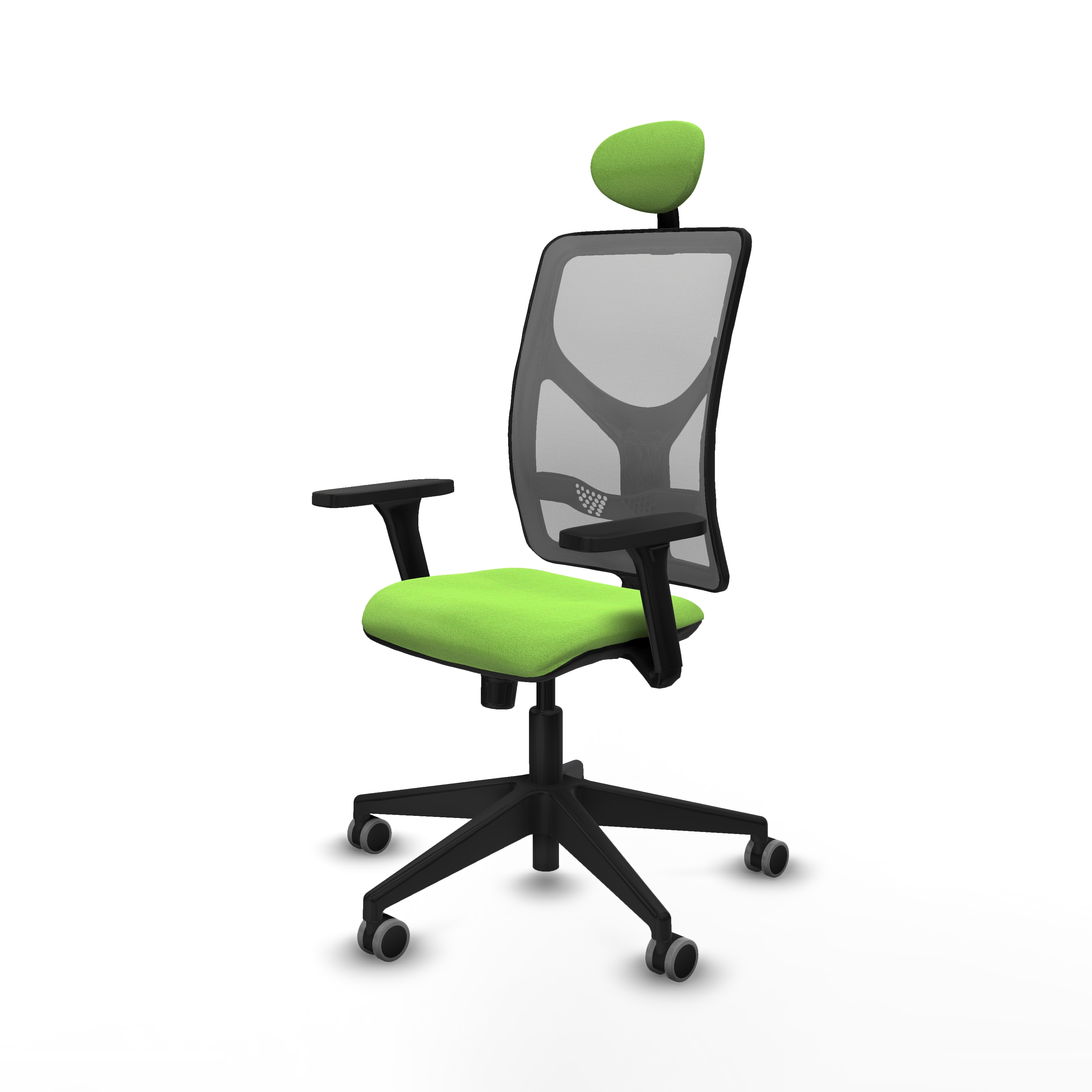 Motilla sincro malla gris bali pistacho brazos 3D base piramidal cabecero fijo ruedas 65mm engomadas