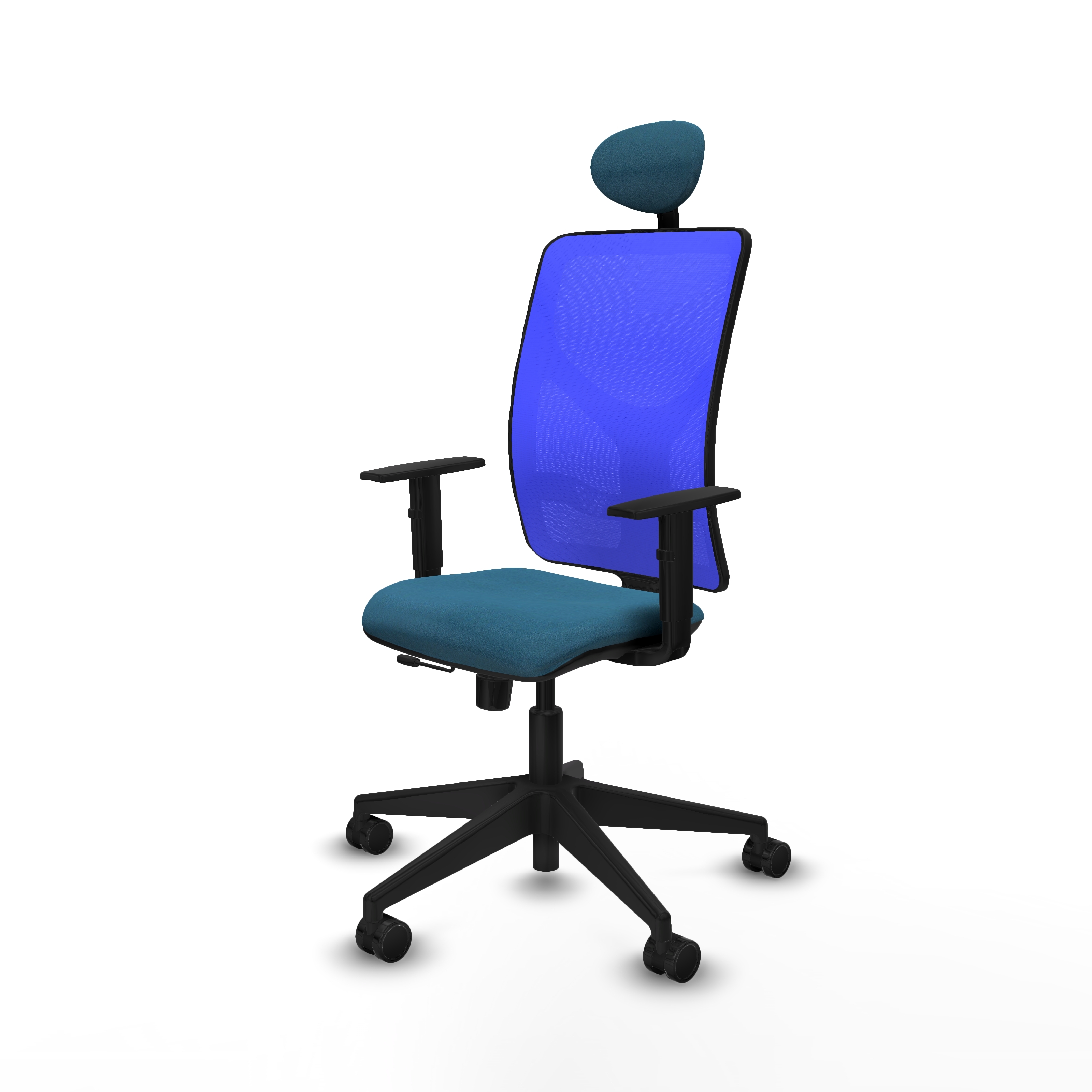 Motilla traslack malla azul bali verde petroleo brazos 1D base piramidal cabecero fijo ruedas 65mm nailon