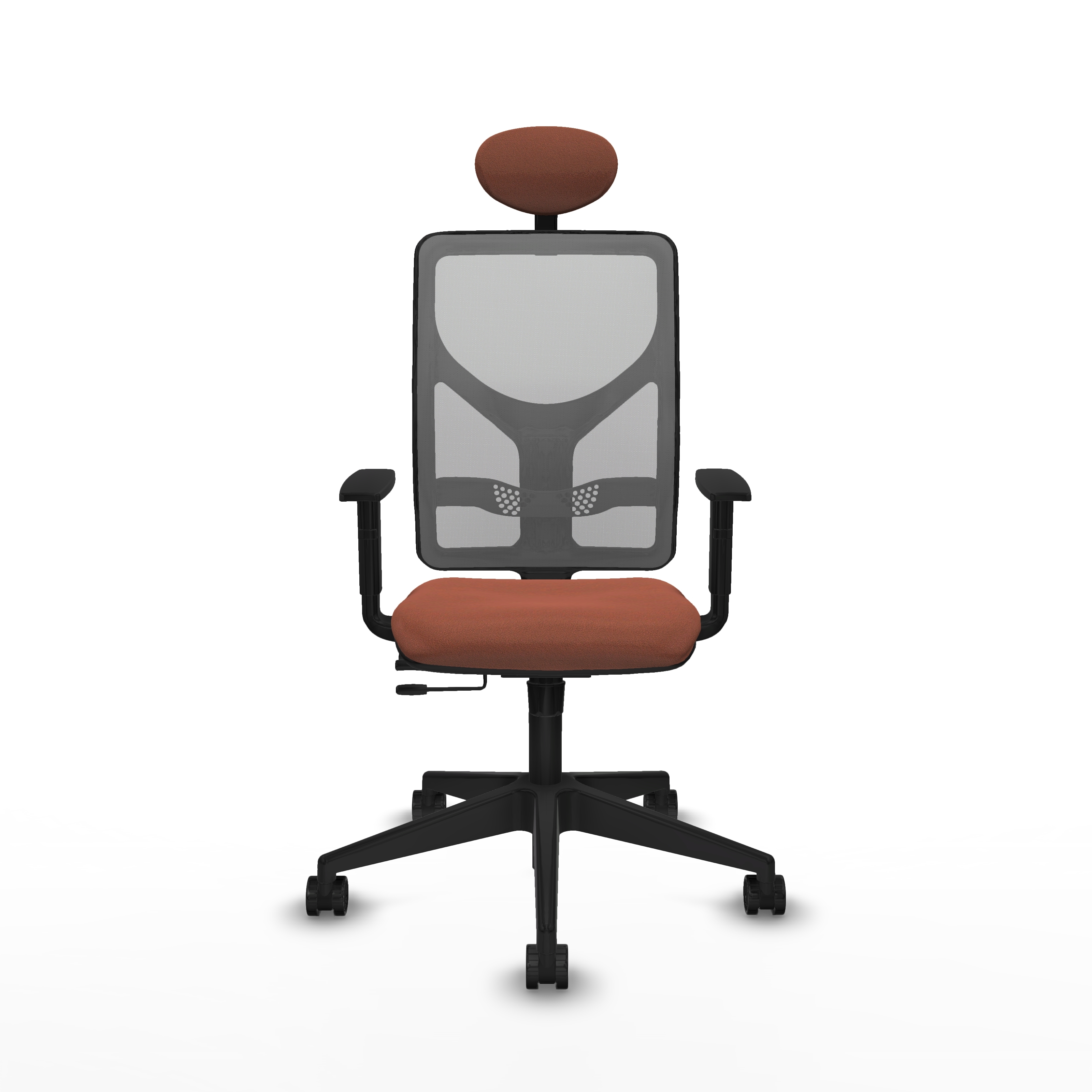 Motilla traslack malla gris bali marrón brazos 1D base piramidal cabecero fijo ruedas 65mm nailon