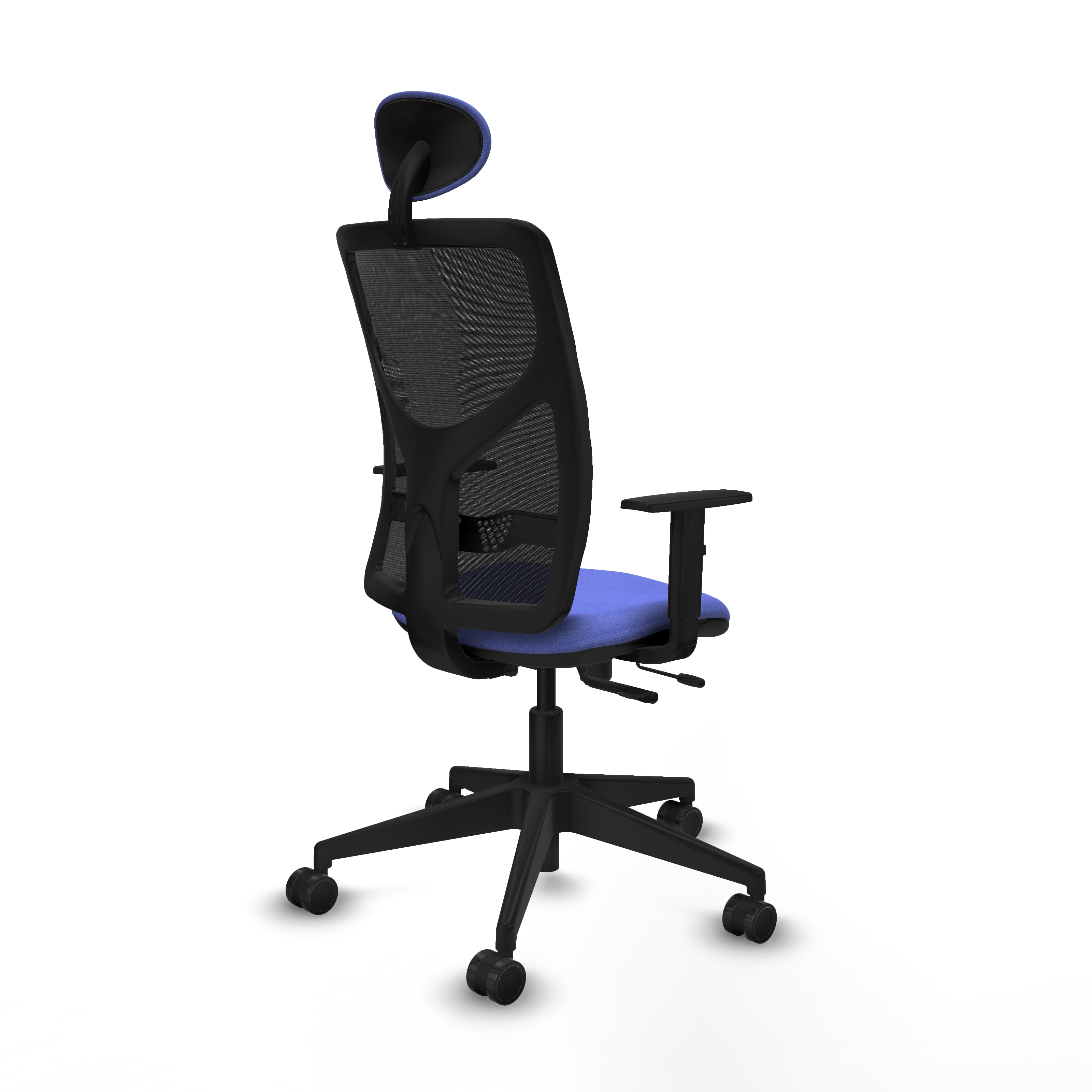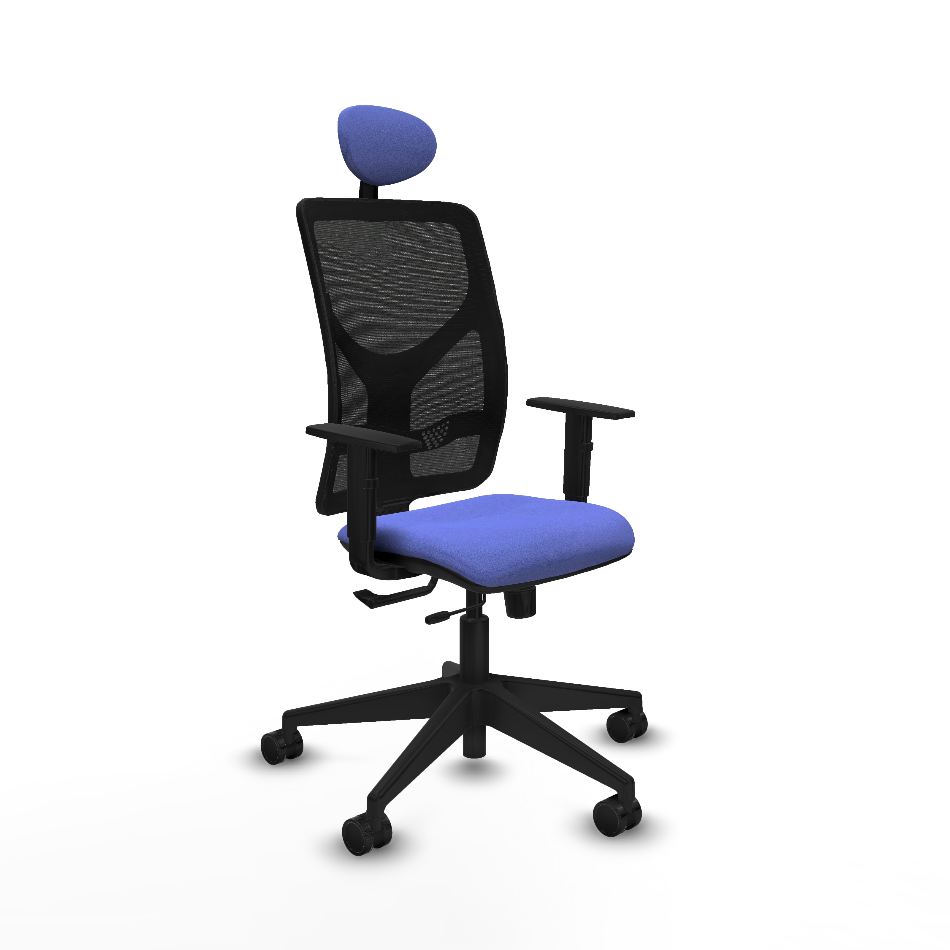 Motilla traslack malla negra bali azul claro brazos 1D base piramidal cabecero fijo ruedas 65mm nailon