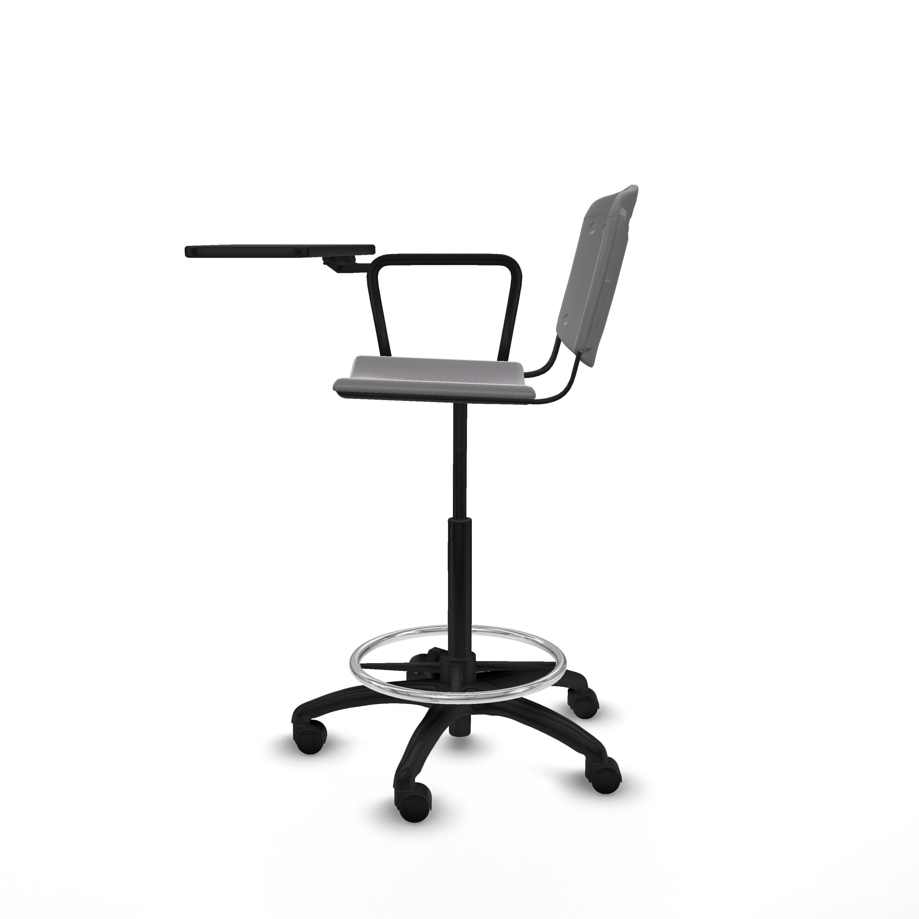 Taburete Robledo giratorio plástico gris claro brazo con pala diestros base poliamida ruedas nailon 50mm