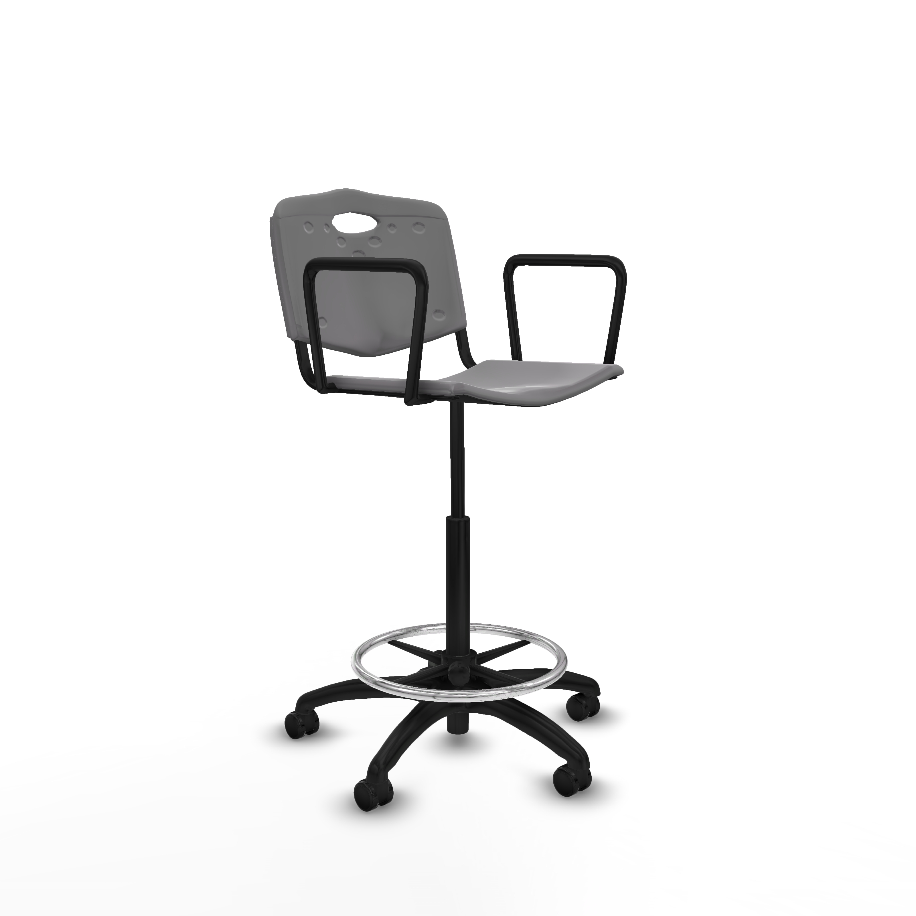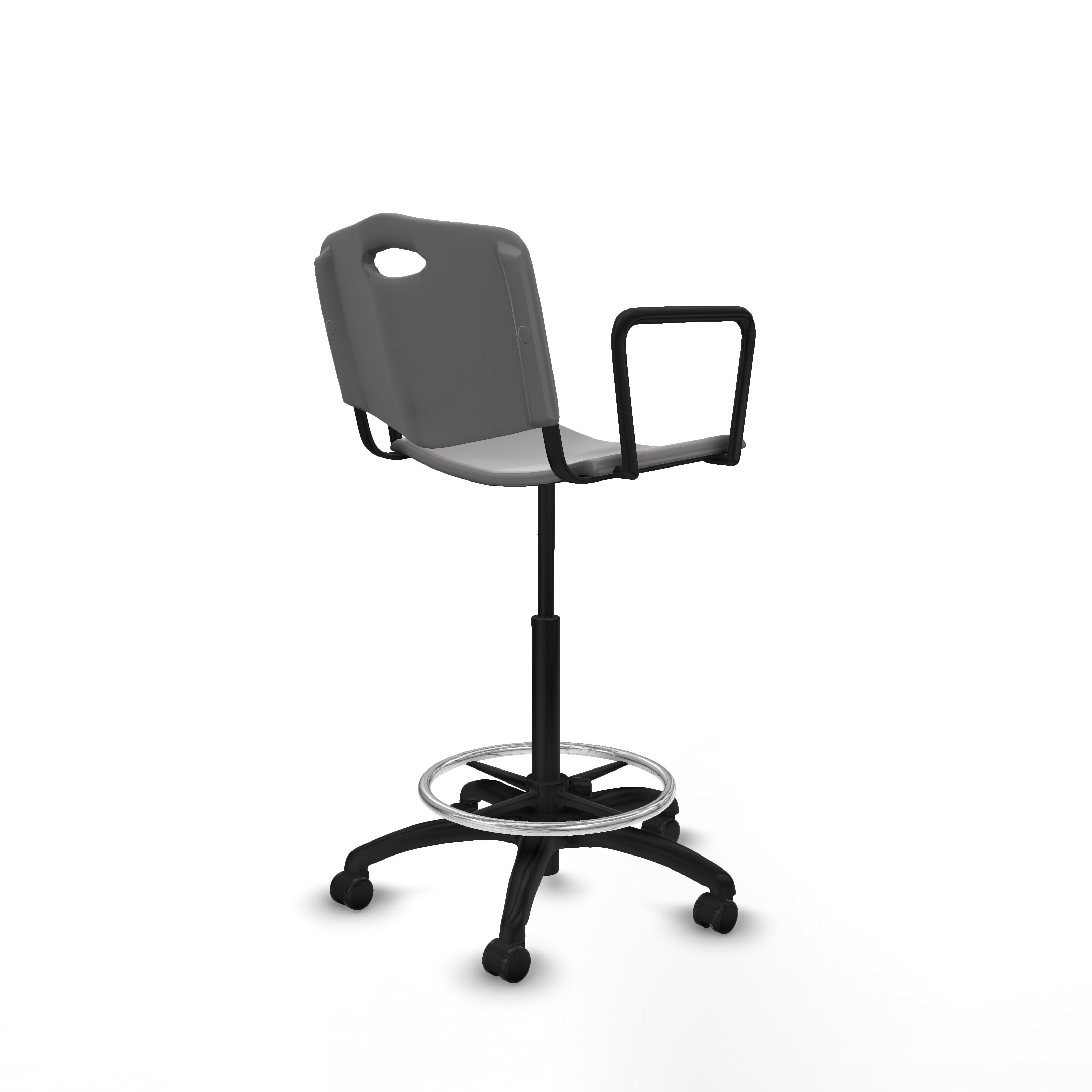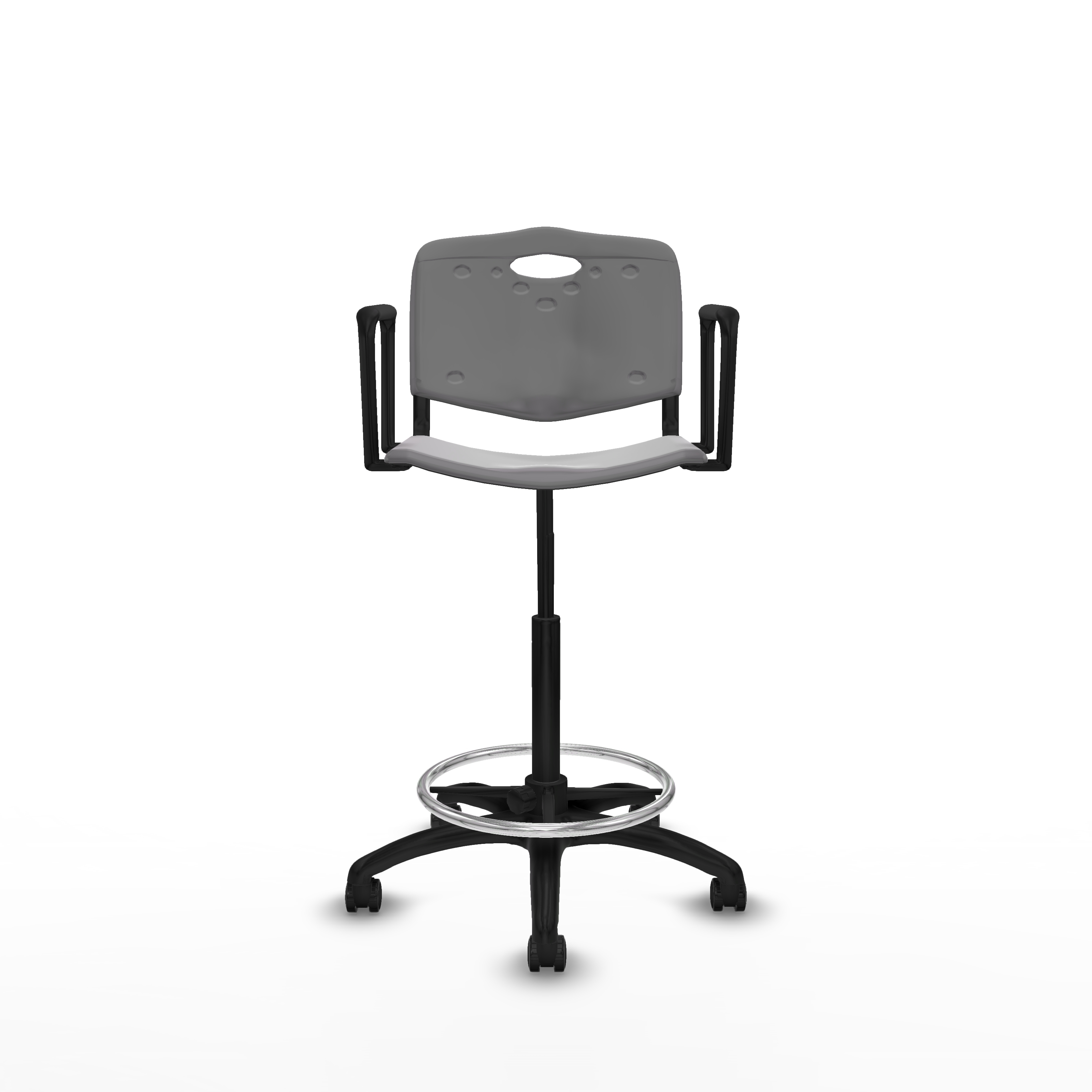 Taburete Robledo giratorio plástico gris claro brazos fijos base poliamida ruedas autofrenantes 50mm