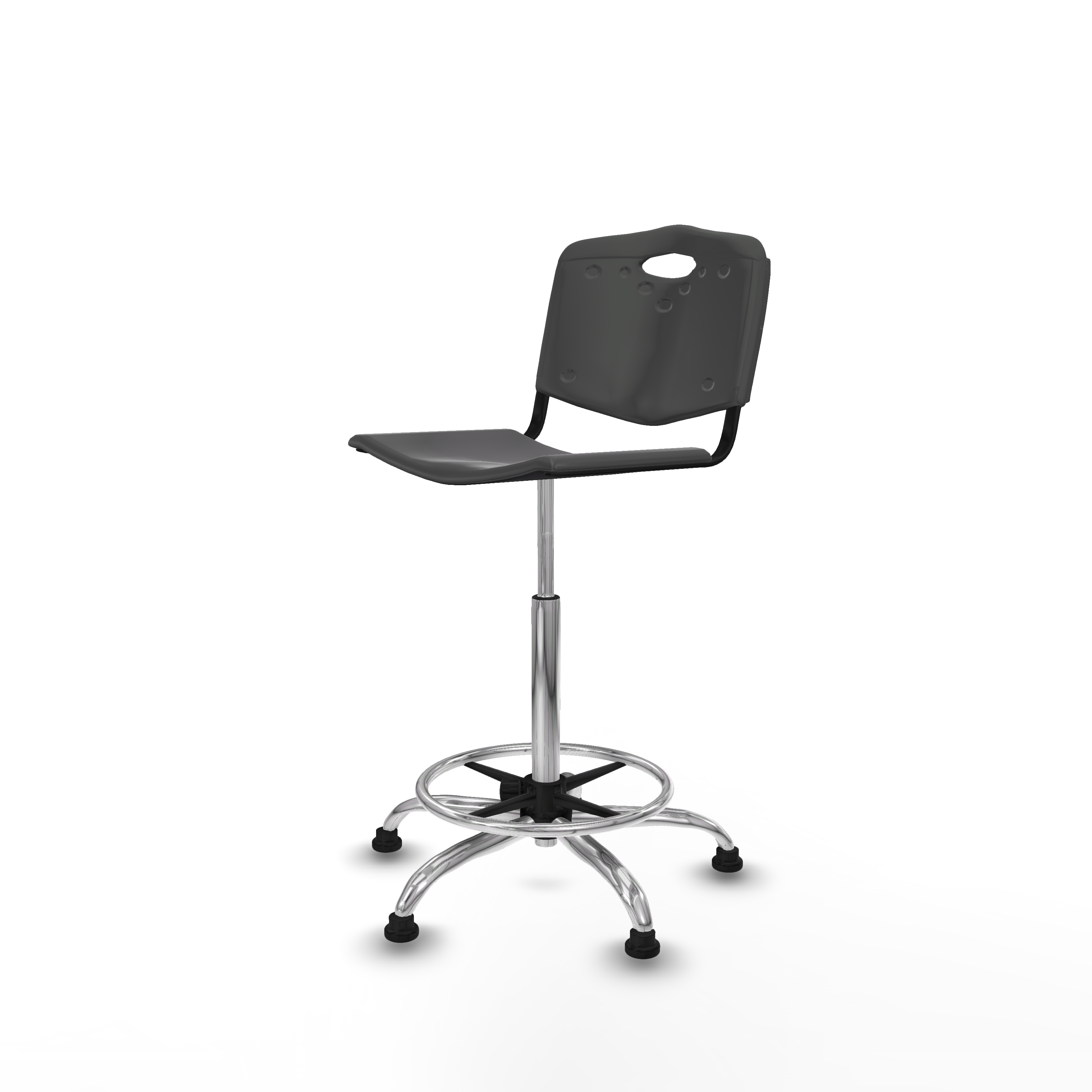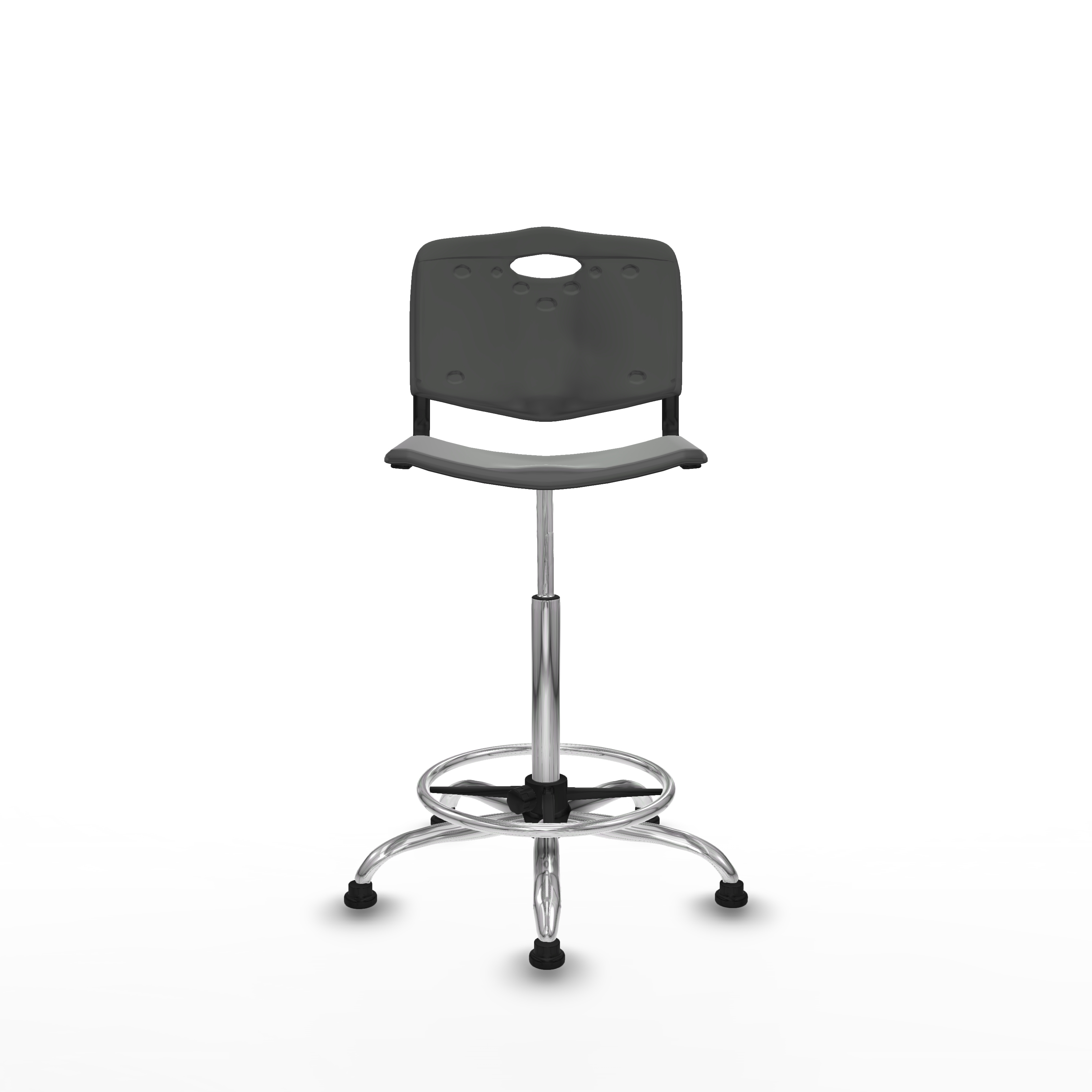 Taburete Robledo giratorio plástico gris oscuro sin brazos base cromada topes