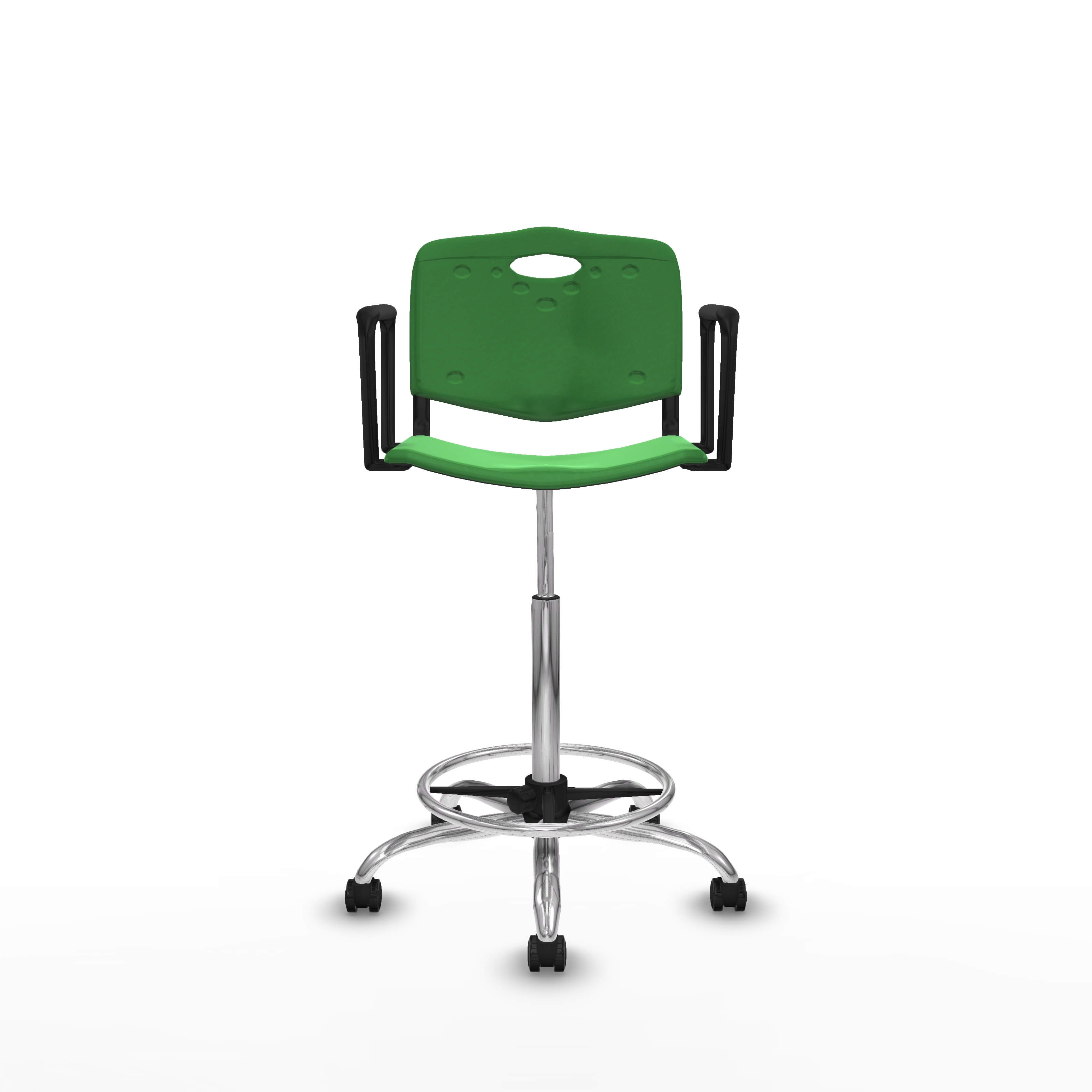 Taburete Robledo giratorio plástico verde brazos fijos base cromada ruedas engomadas 50mm