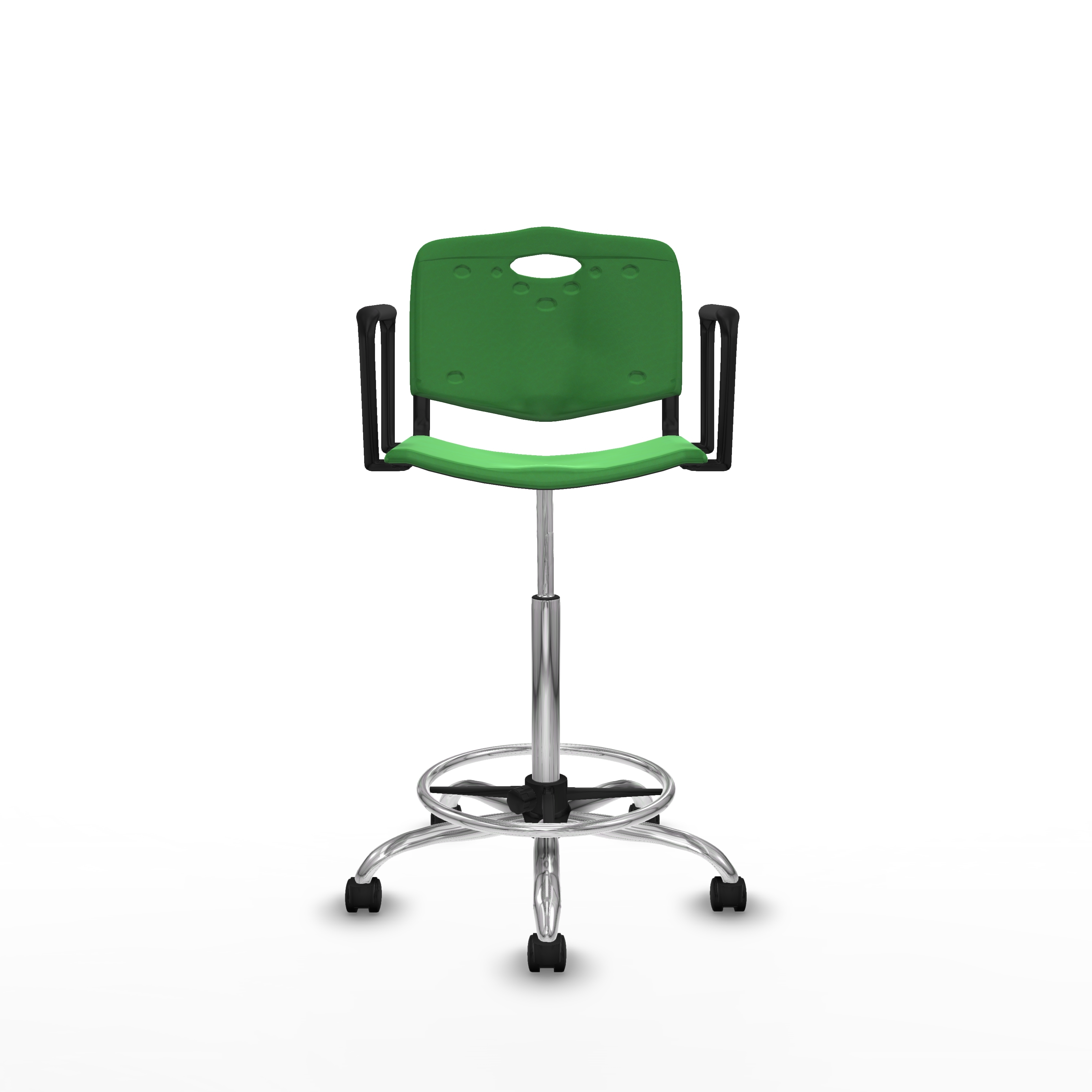 Taburete Robledo giratorio plástico verde brazos fijos base cromada ruedas nailon 50mm