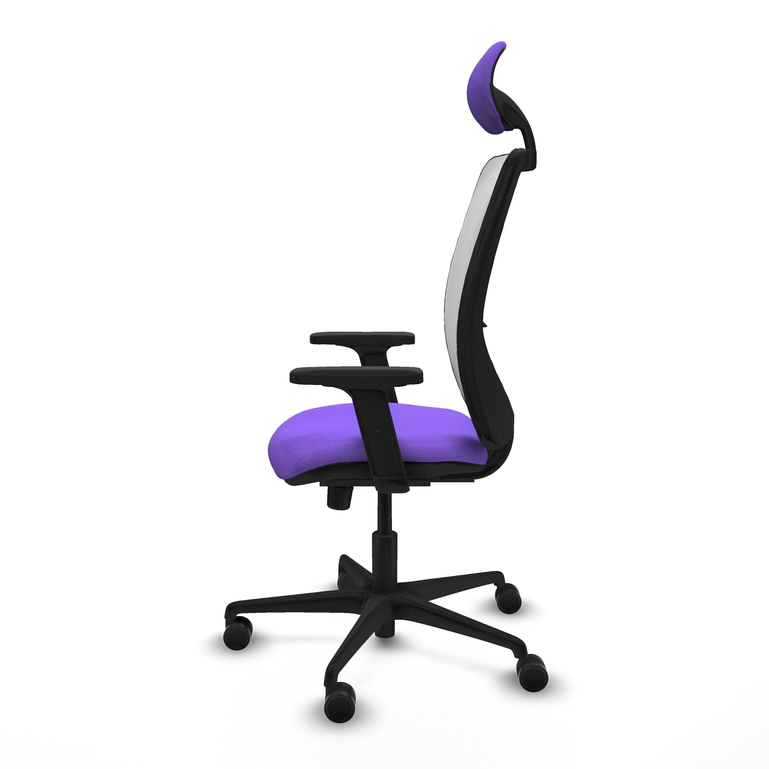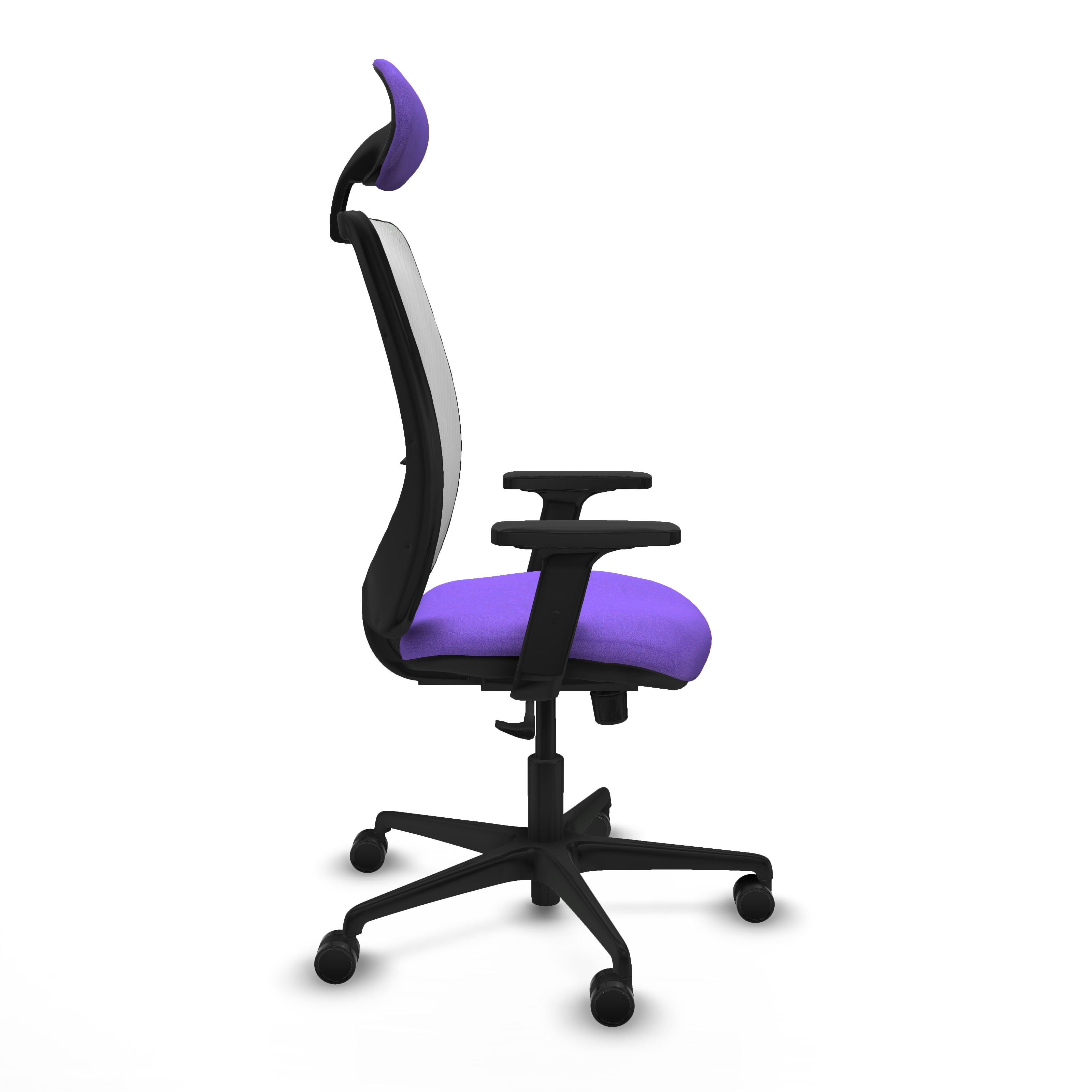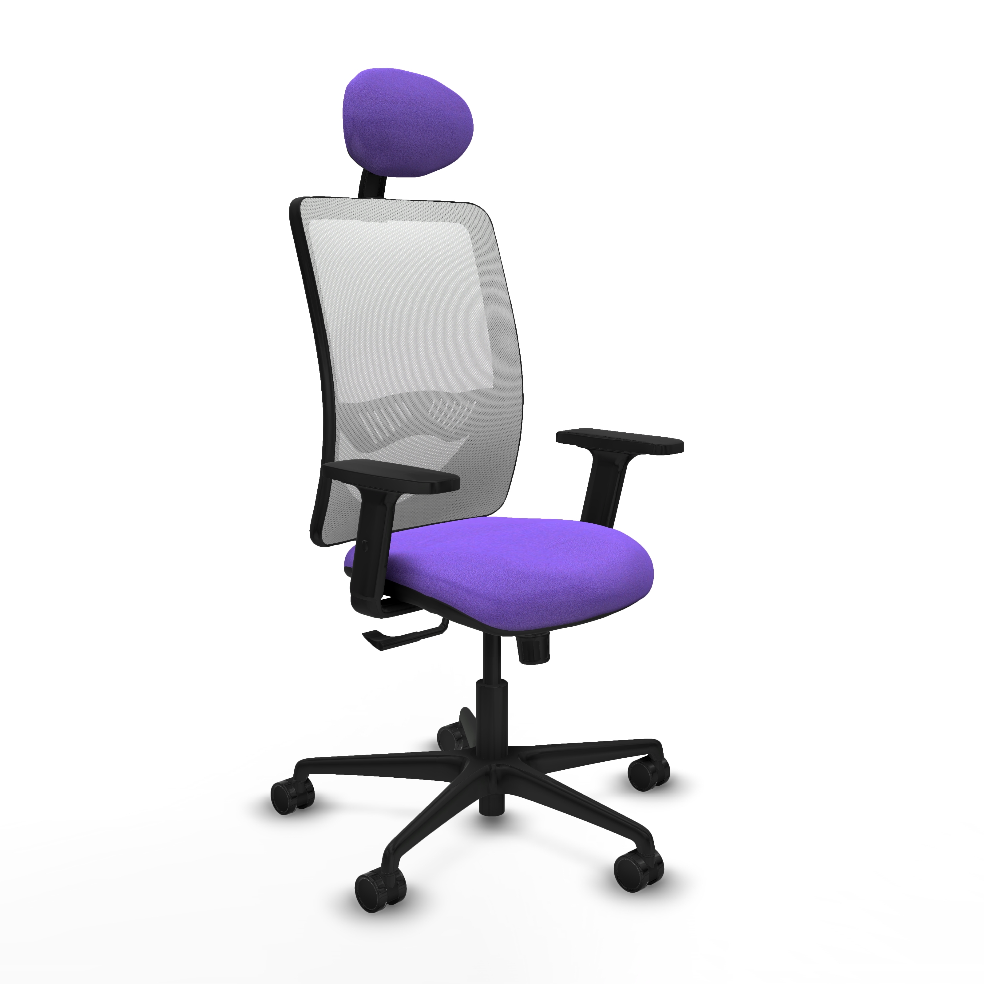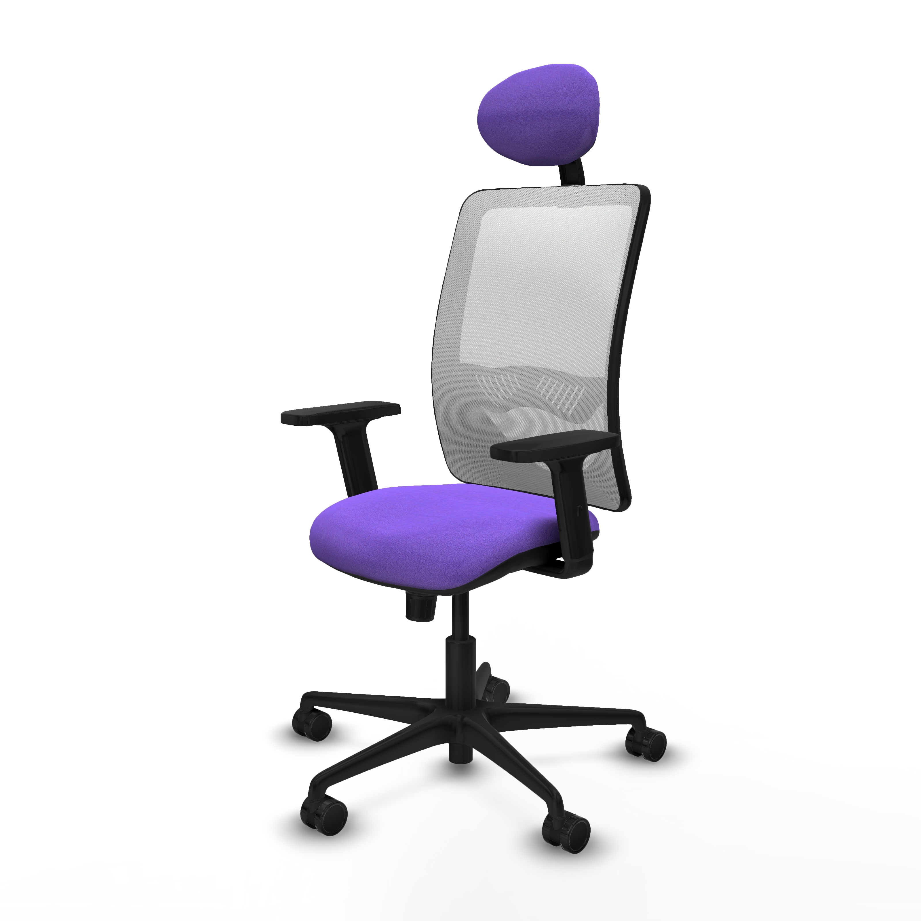 Zulema sincro malla blanca bali lila brazos 2D base nailon cabecero fijo ruedas 65mm nailon