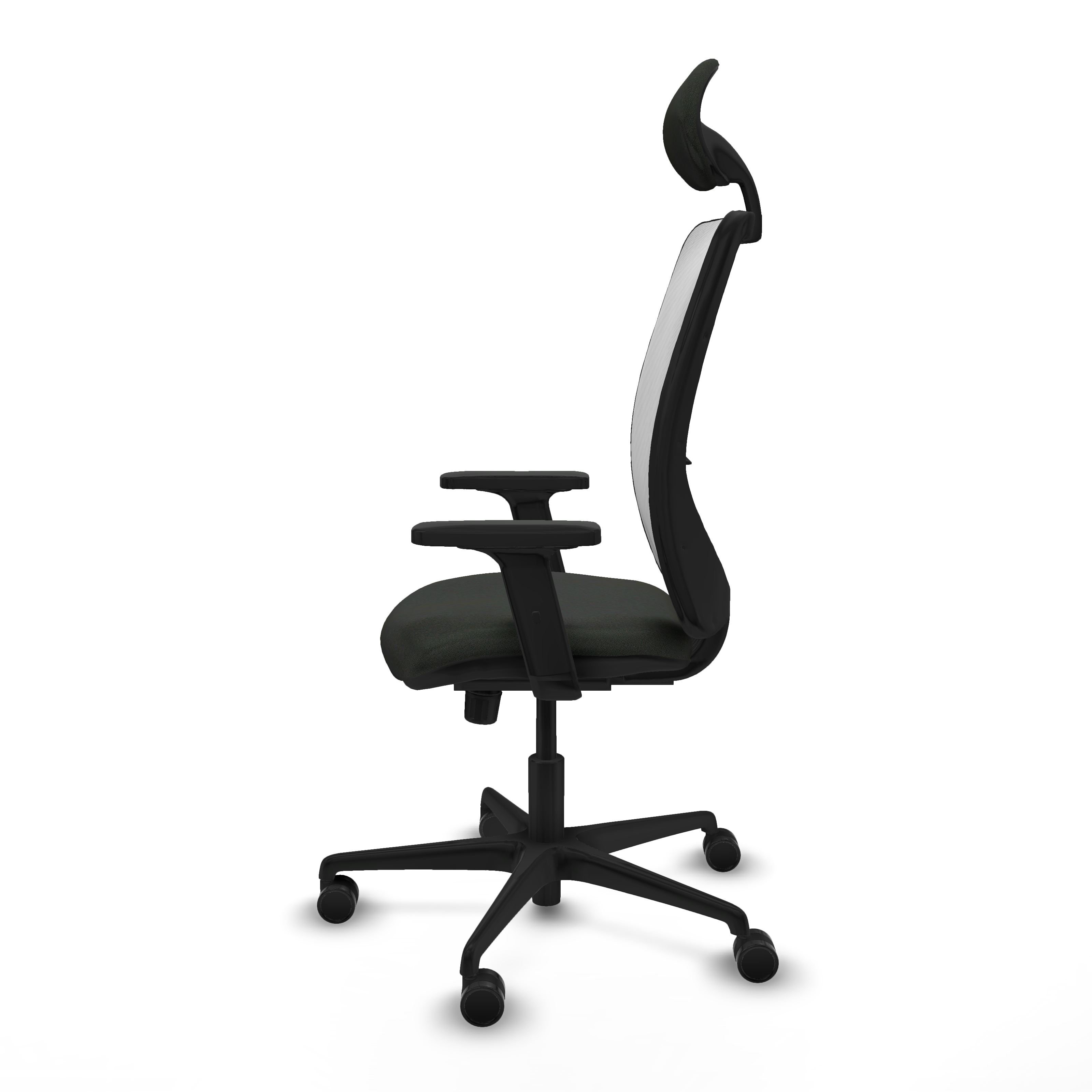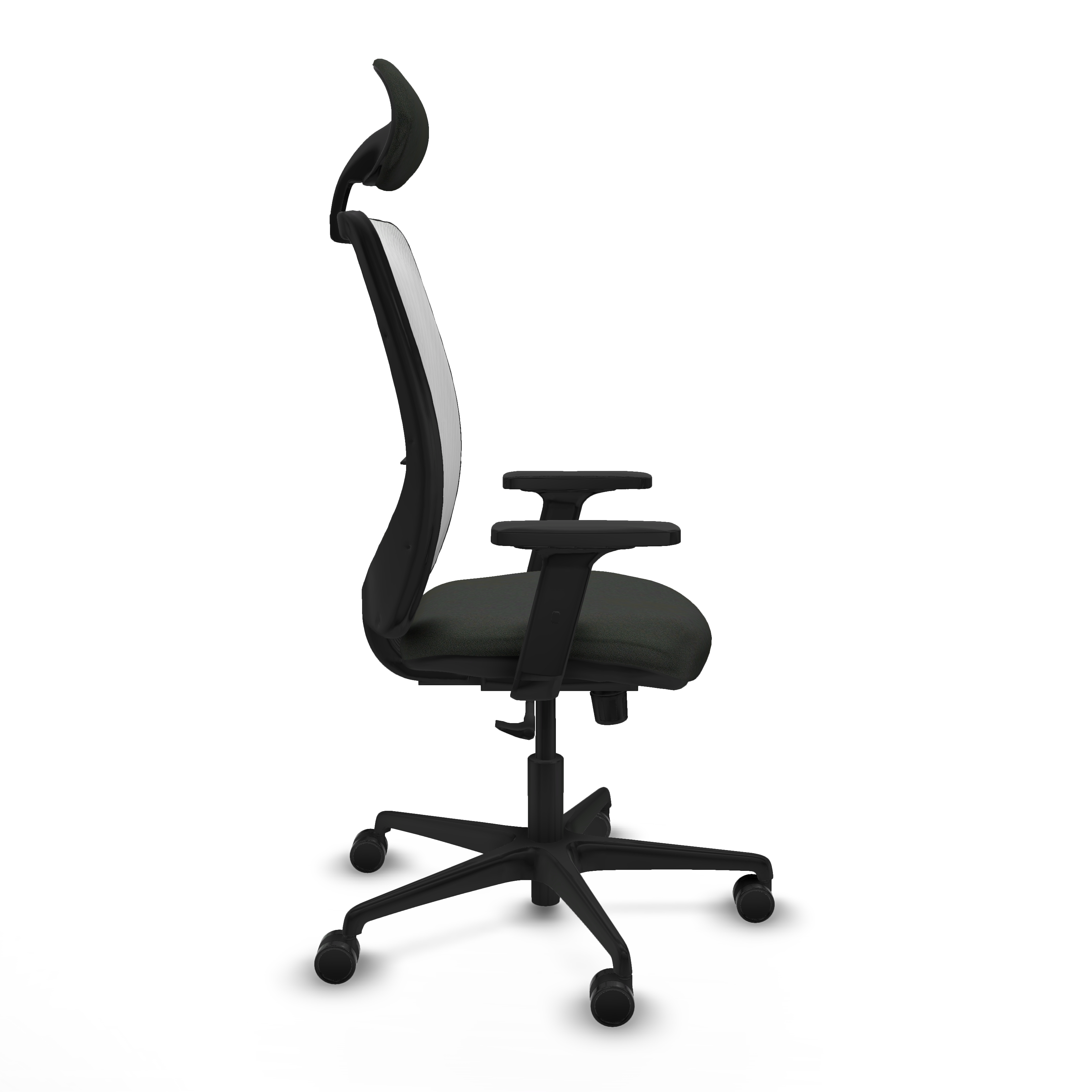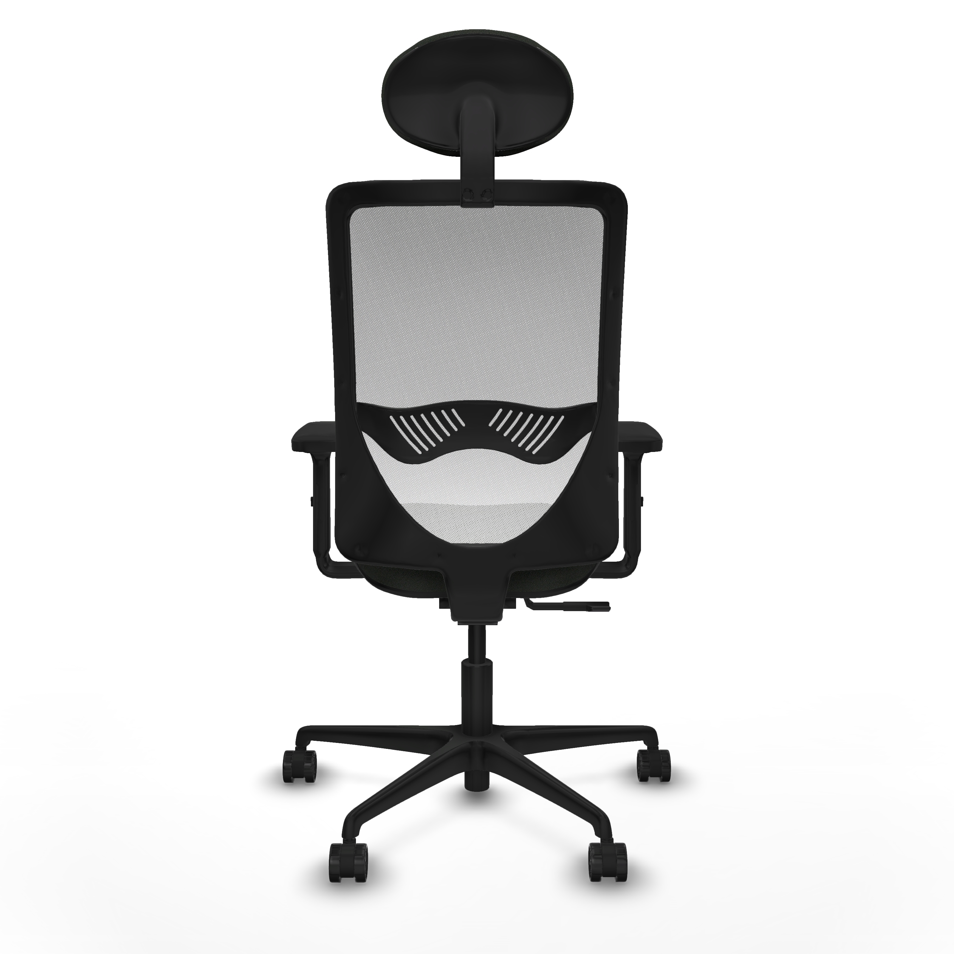 Zulema sincro malla blanca bali negro brazos 2D base nailon cabecero fijo ruedas 65mm nailon