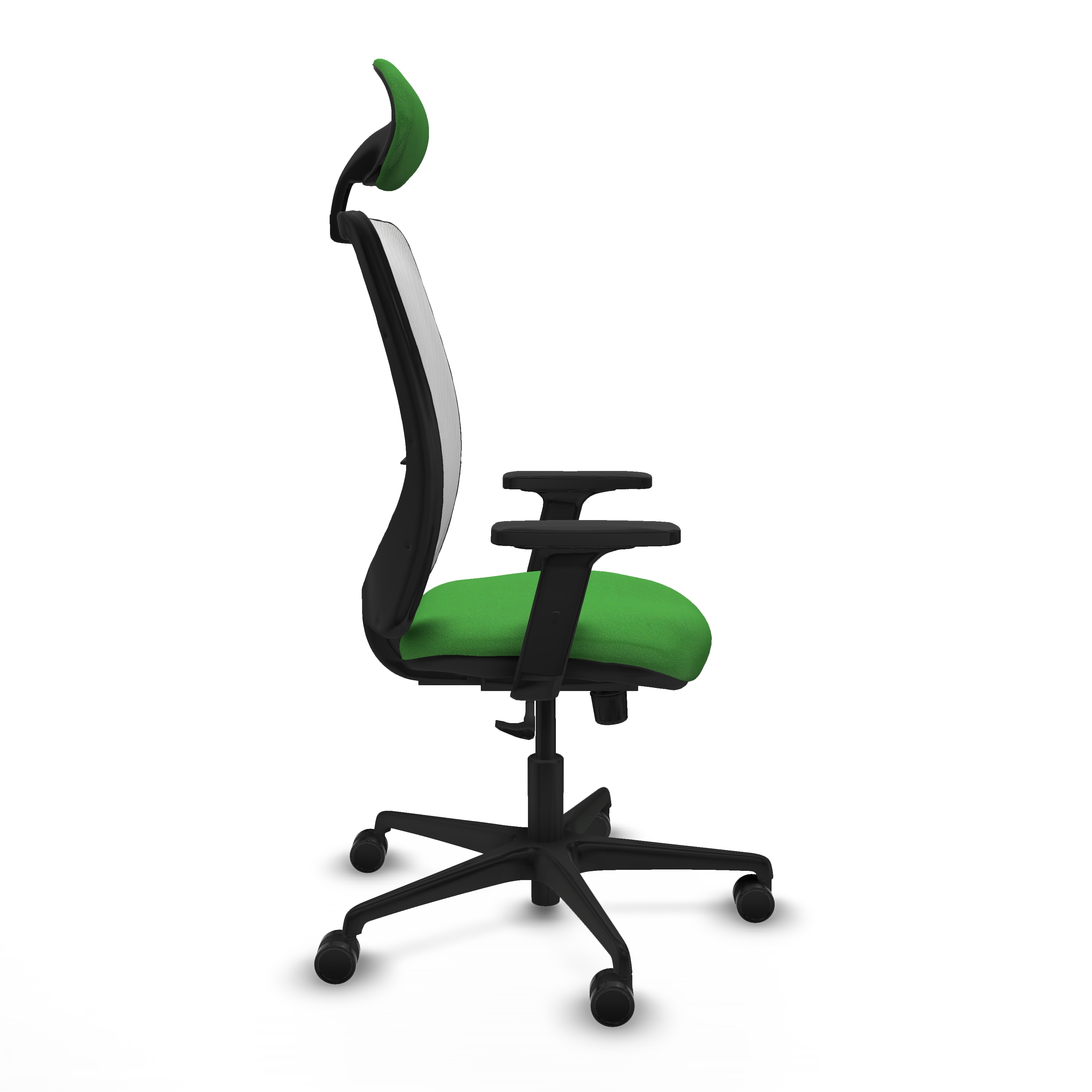 Zulema sincro malla blanca bali verde brazos 2D base nailon cabecero fijo ruedas 65mm nailon