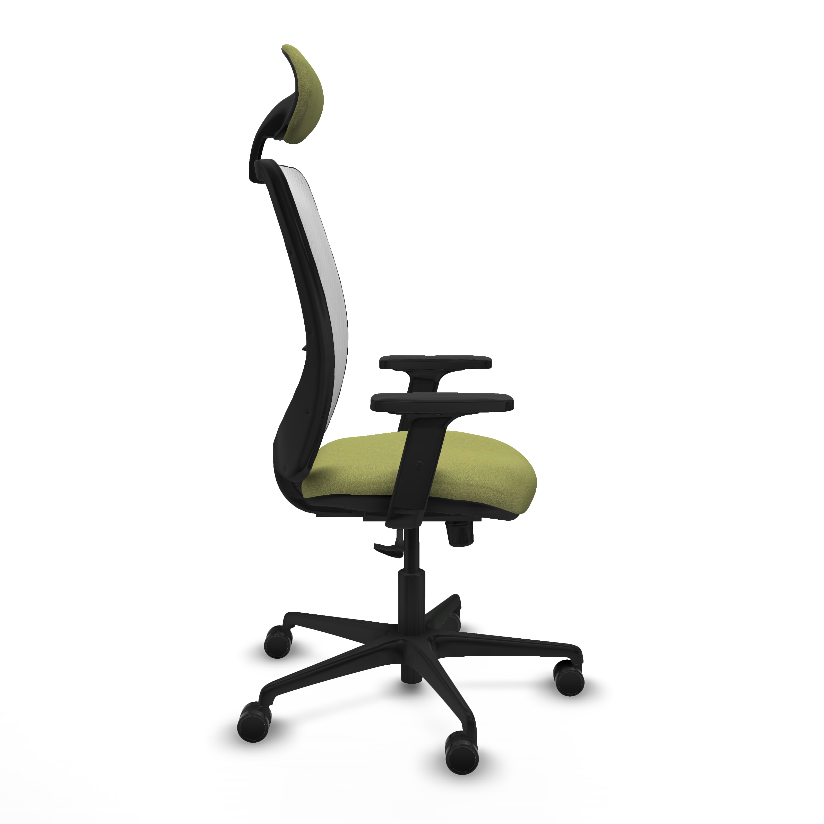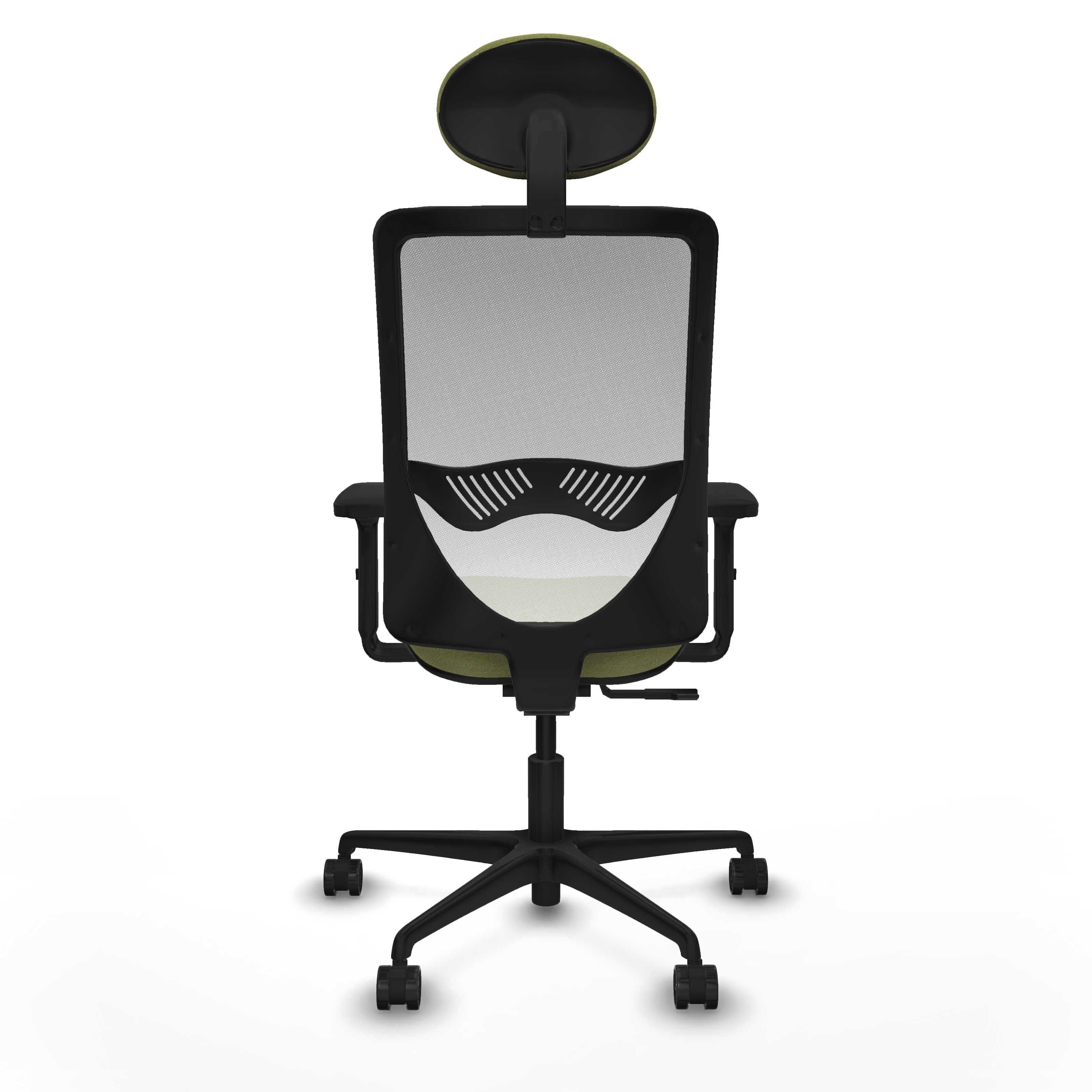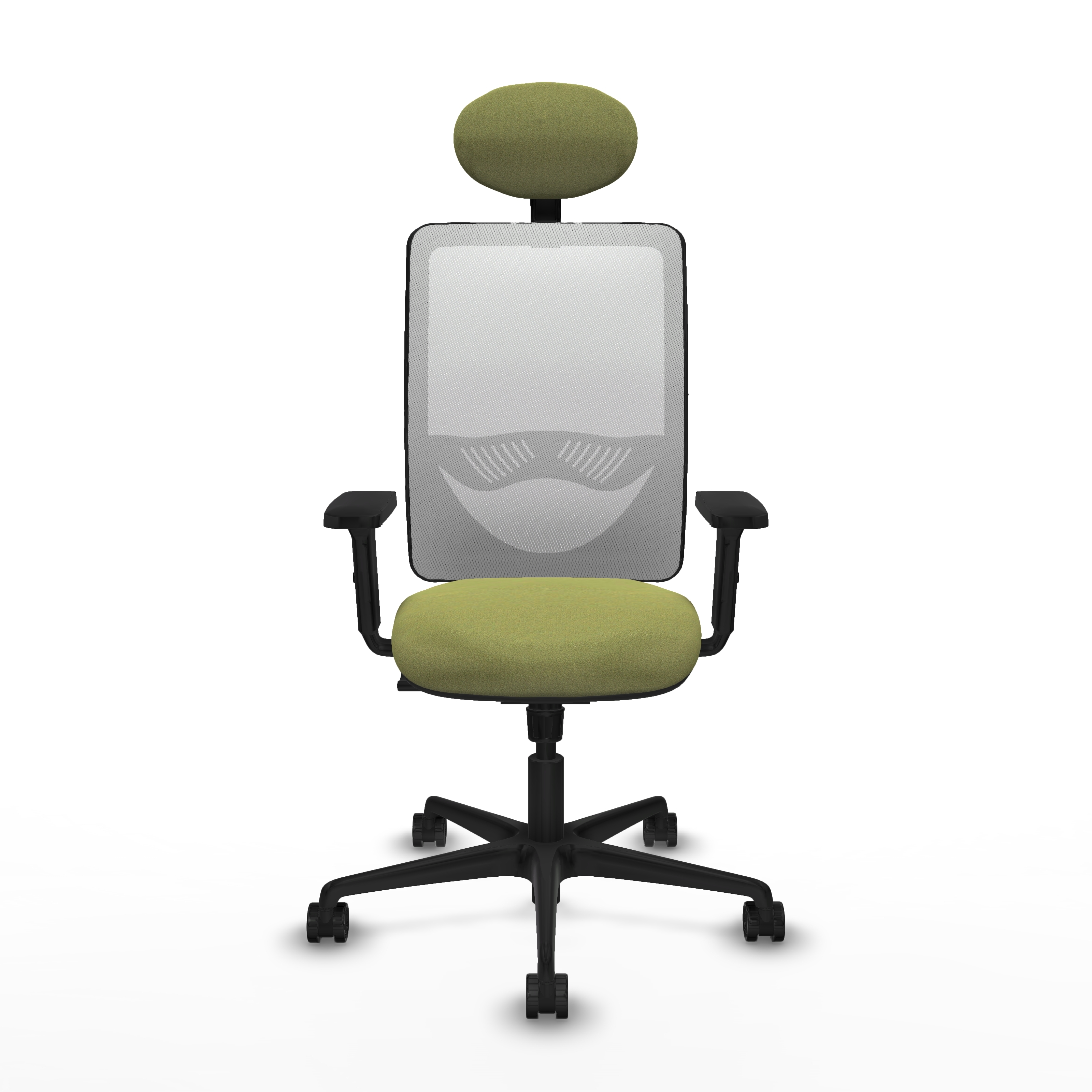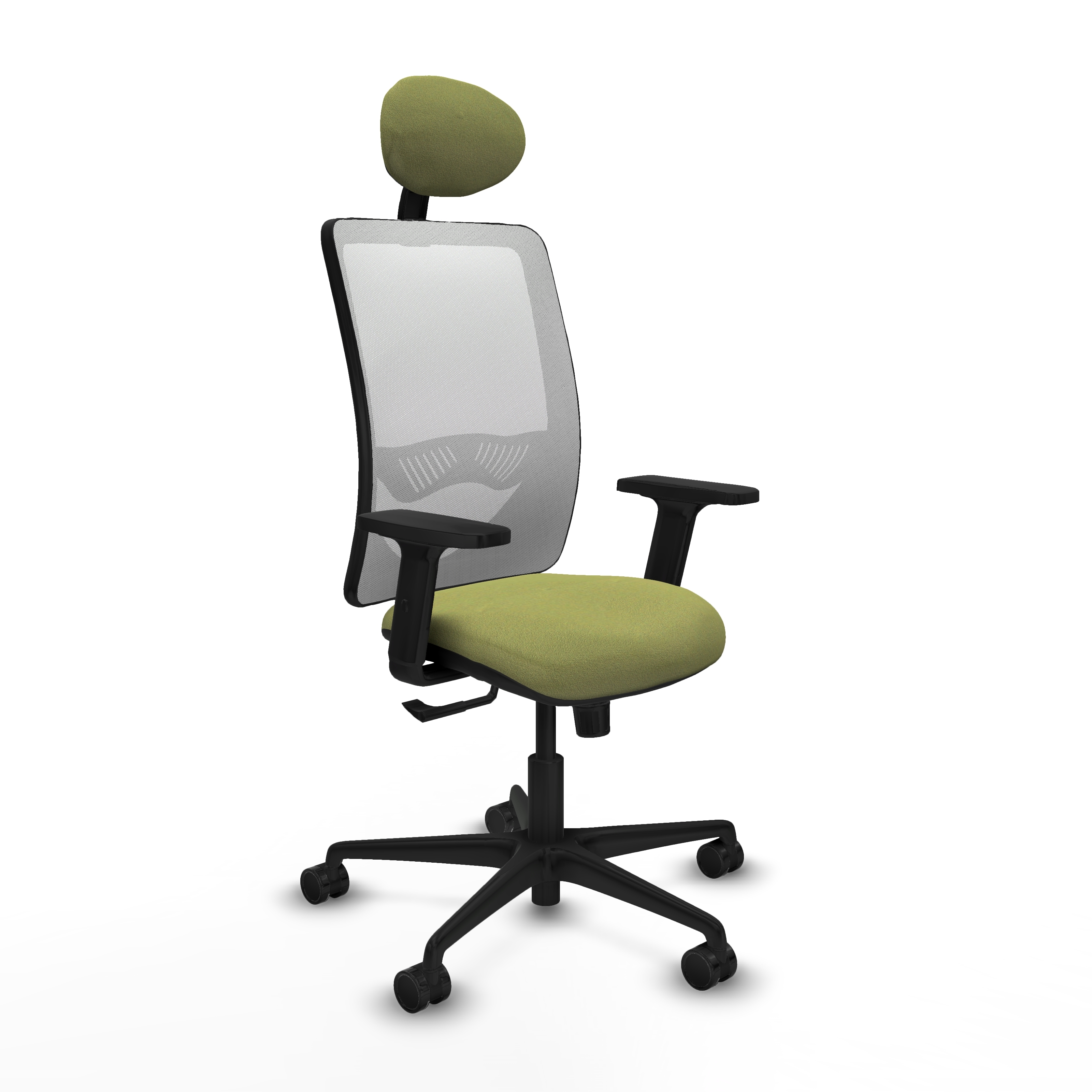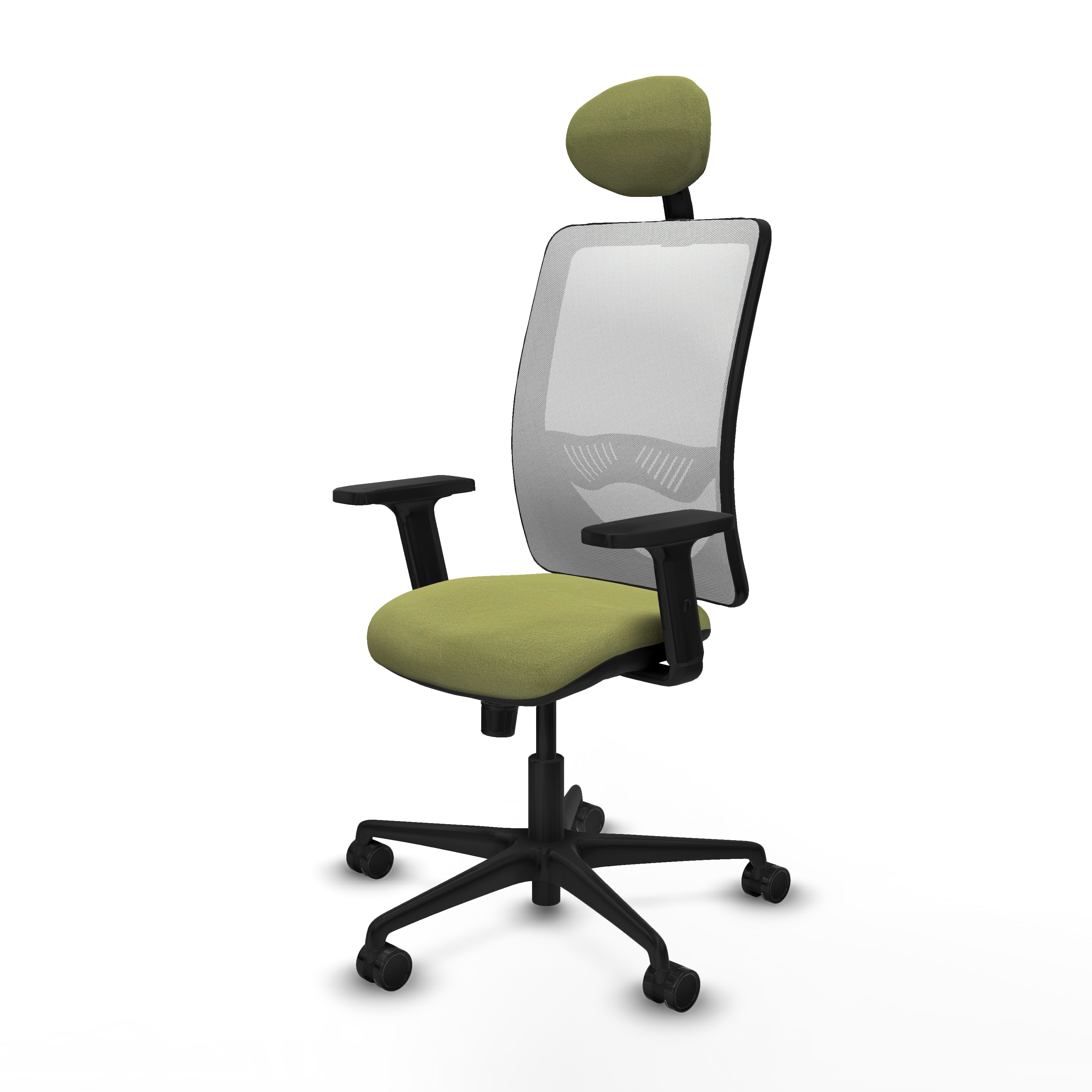Zulema sincro malla blanca bali verde oliva brazos 2D base nailon cabecero fijo ruedas 65mm nailon