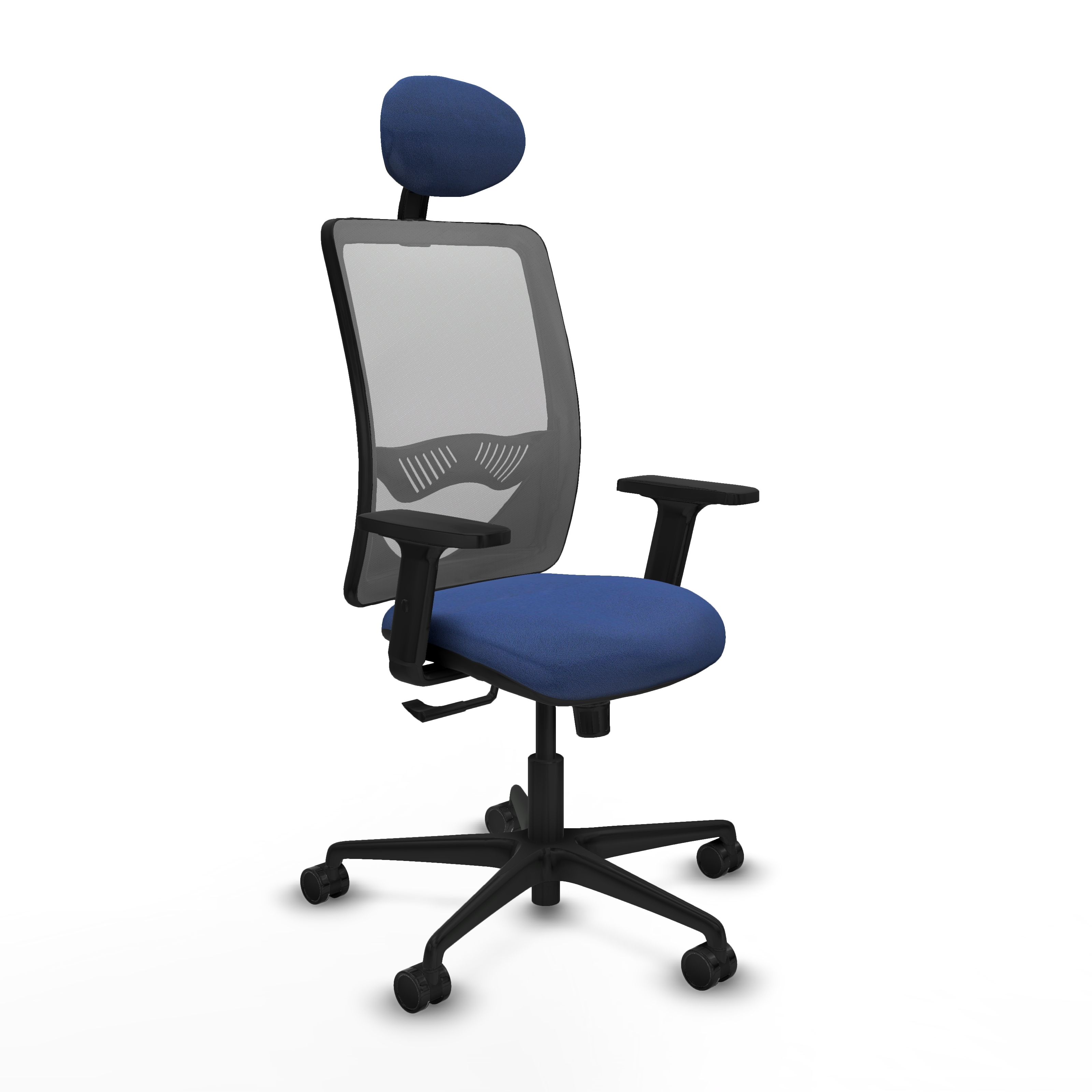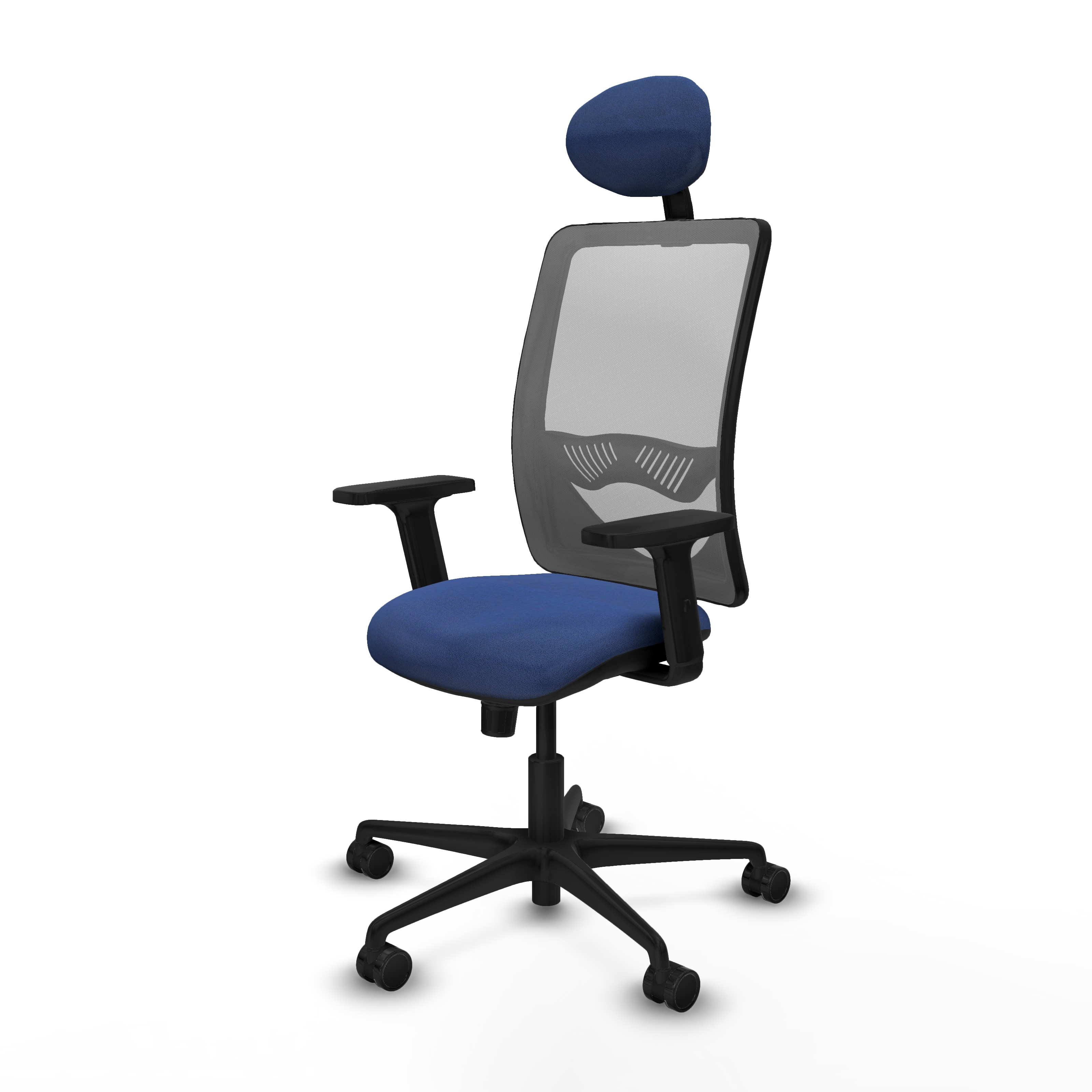 Zulema sincro malla gris bali azul marino brazos 2D base nailon cabecero fijo ruedas 65mm nailon