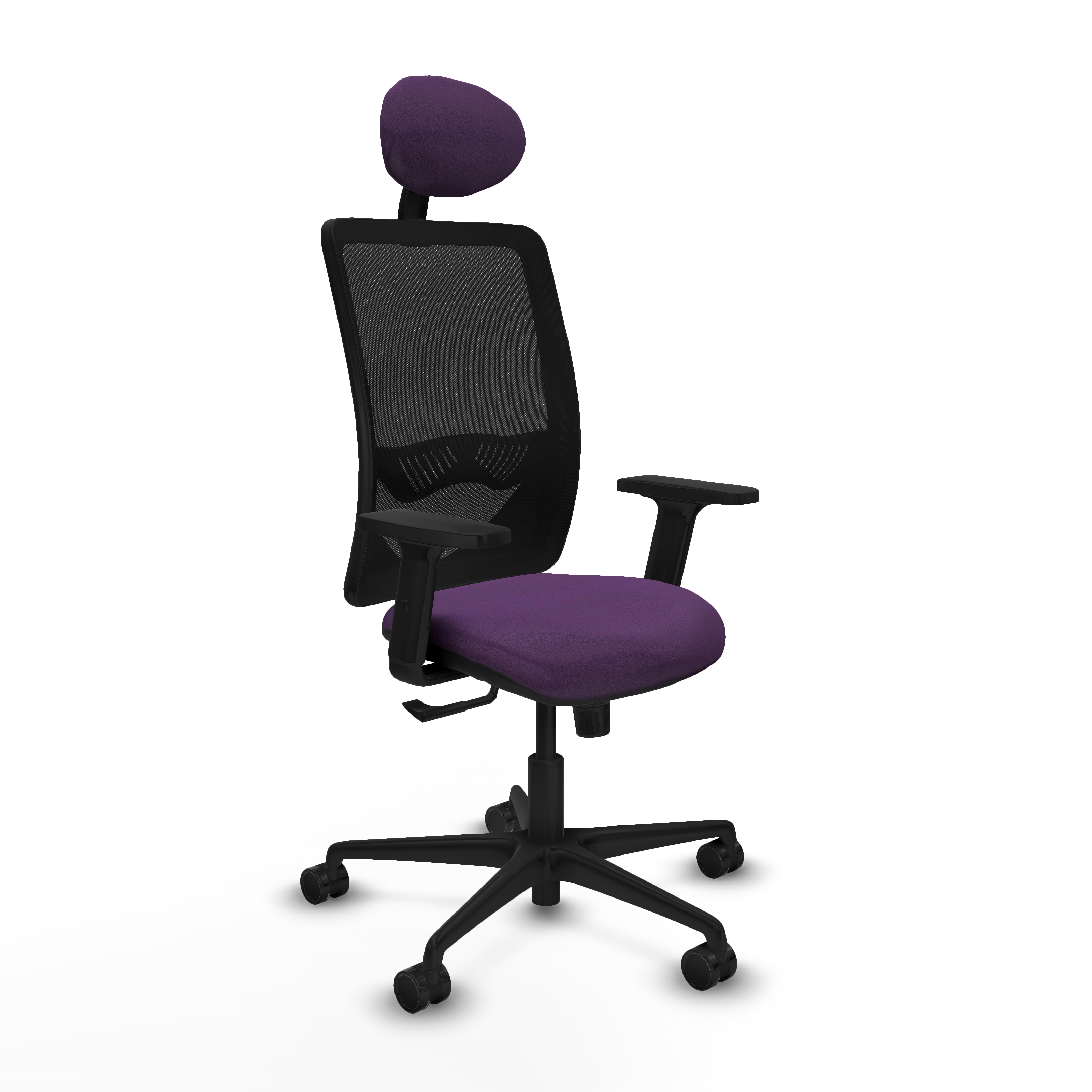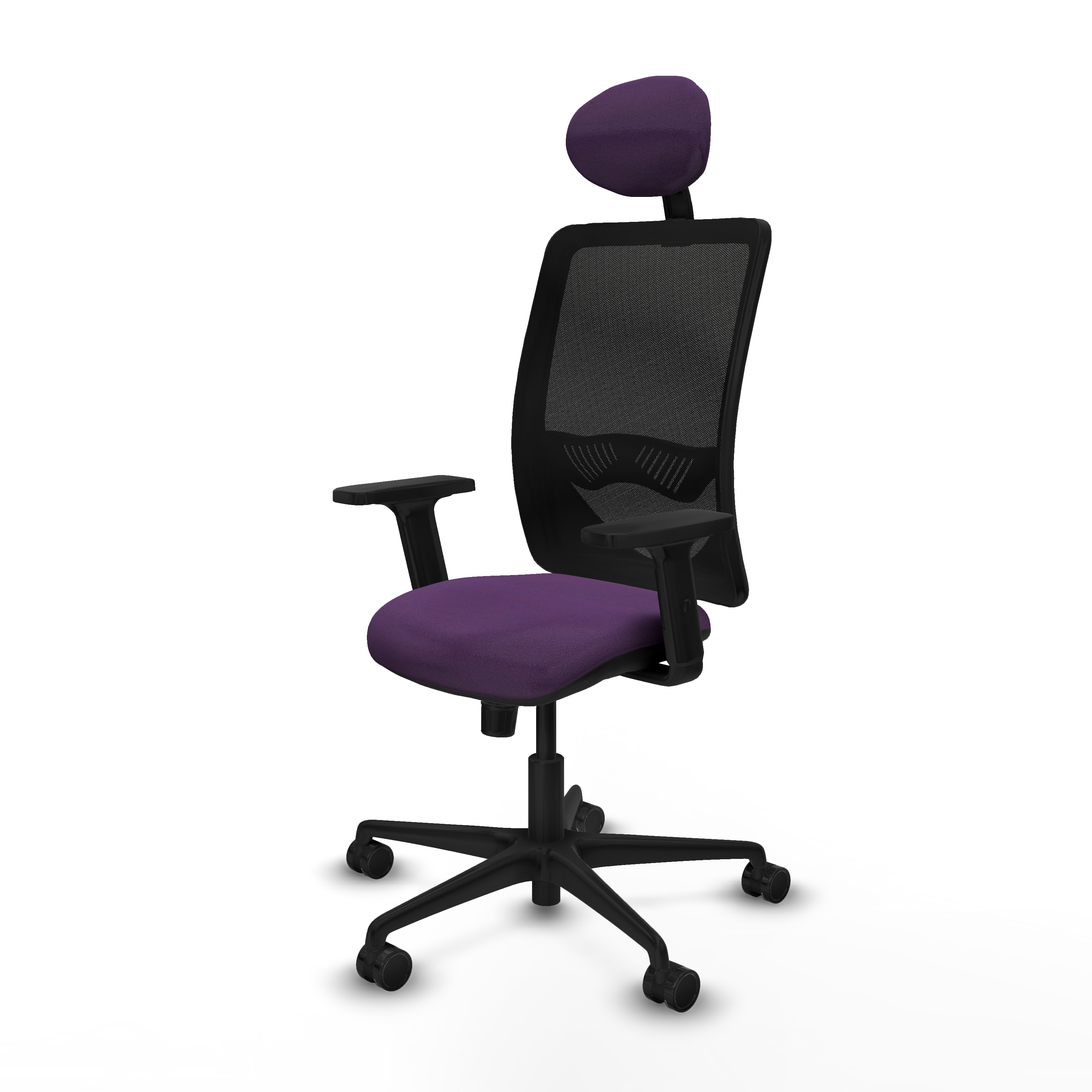 Zulema sincro malla negra bali morado brazos 2D base nailon cabecero fijo ruedas 65mm nailon